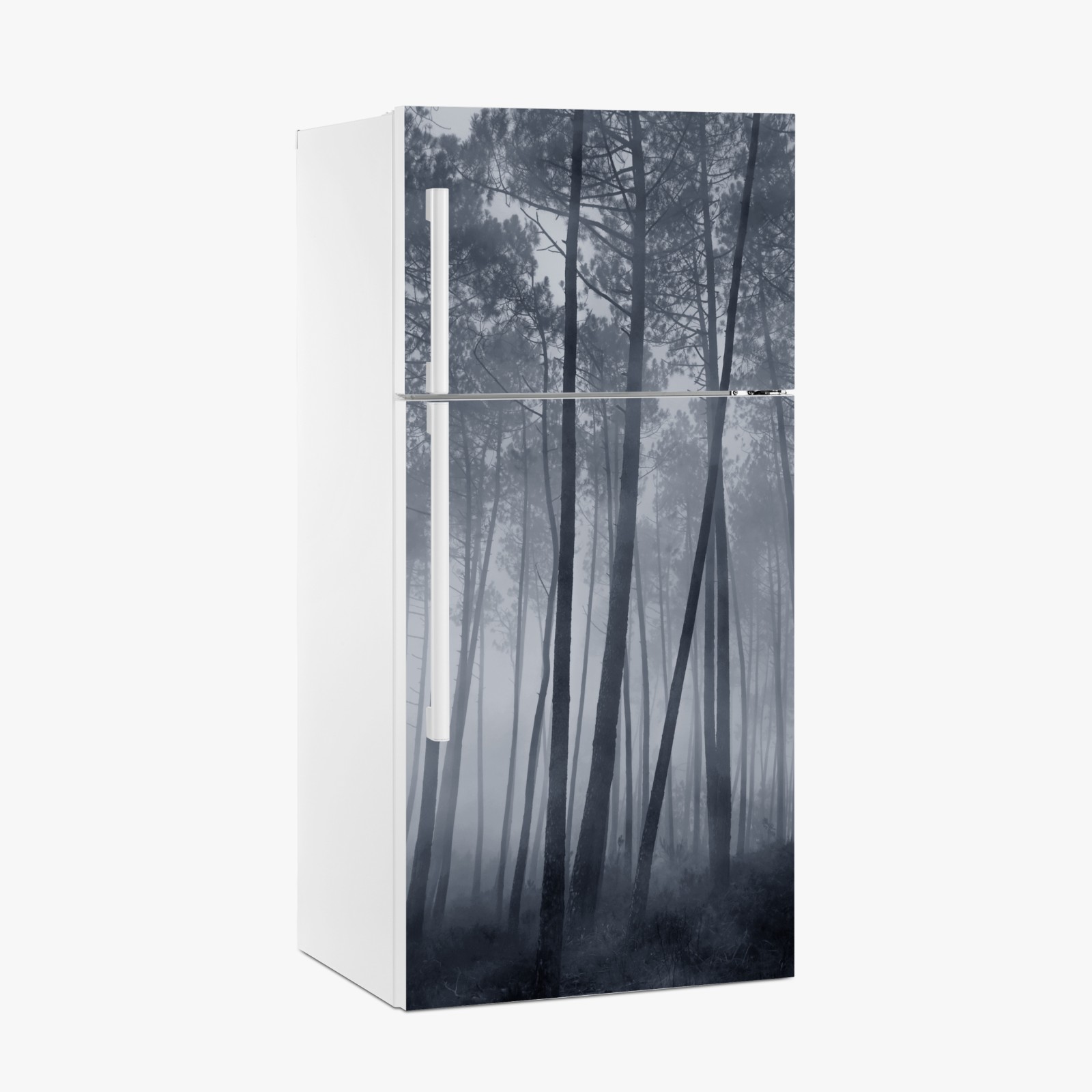 Naklejka na lodówkę Mglisty sosnowy las nocą
