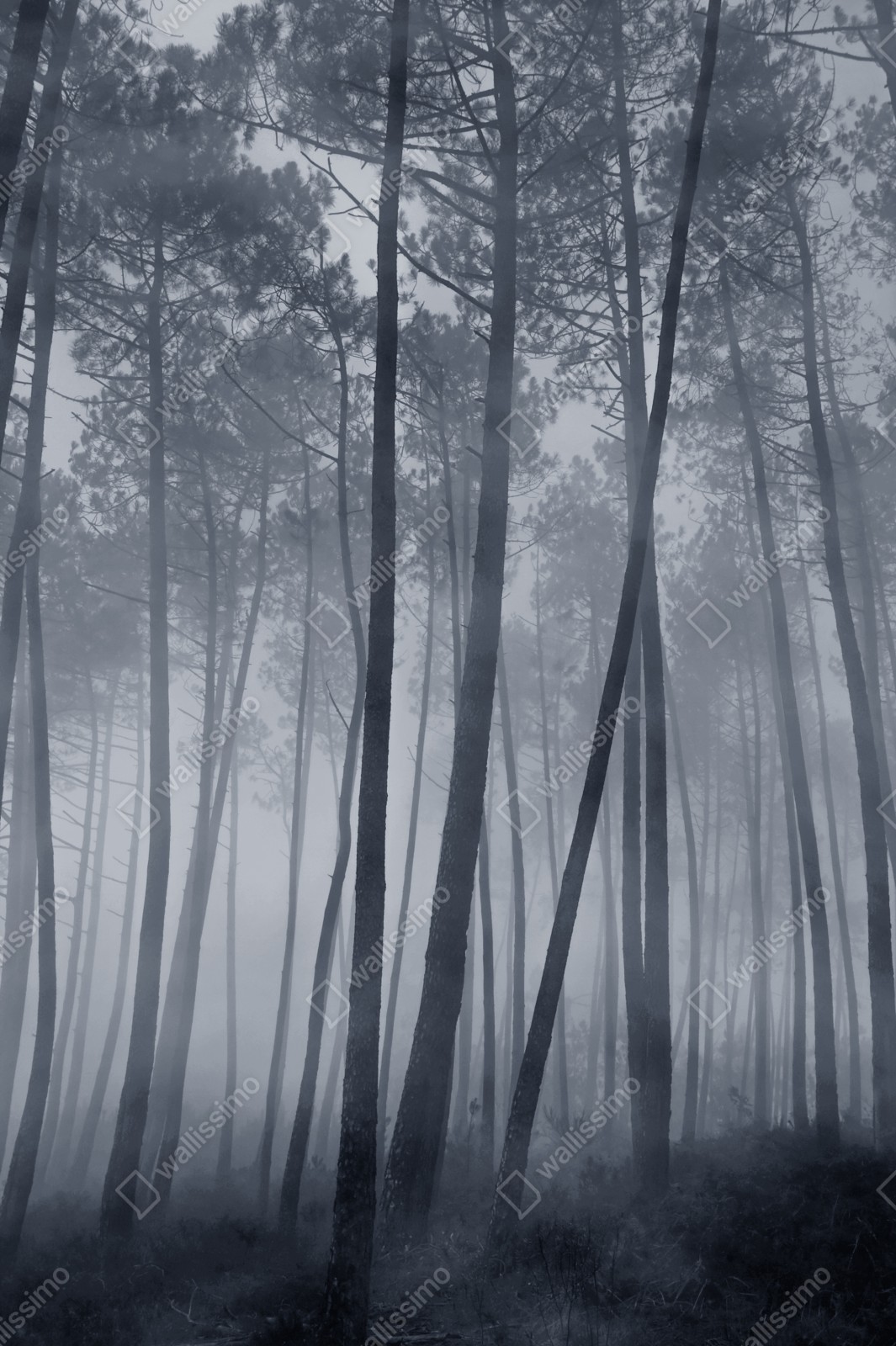 Wprowadź do wnętrza mroczną i nastrojową atmosferę mglistego sosnowego lasu.