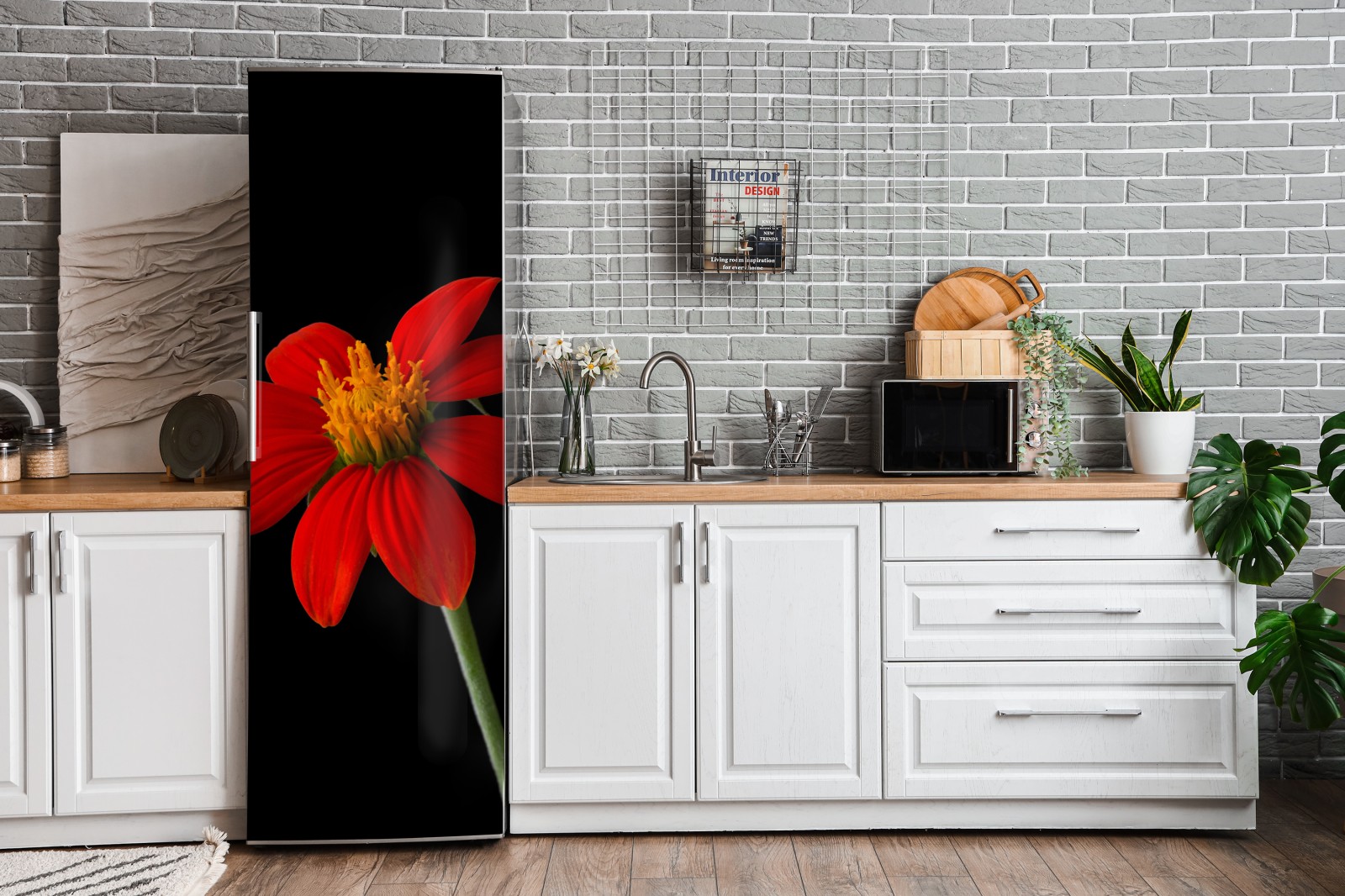 Naklejka na lodówkę Żywy słonecznik meksykański na czarnym tle