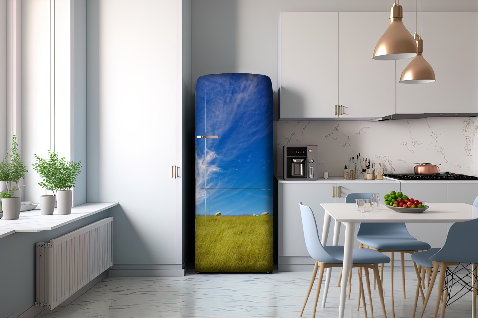 Naklejka na lodówkę Spokojna łąka pod błękitnym niebem