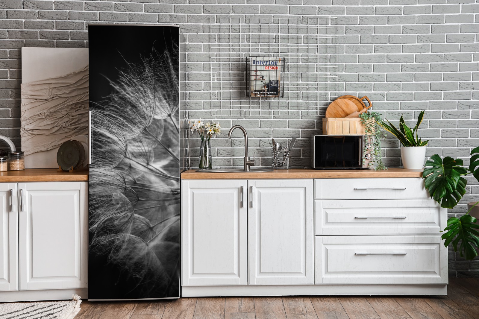Naklejka na lodówkę Delikatny puch dmuchawca w monochromie