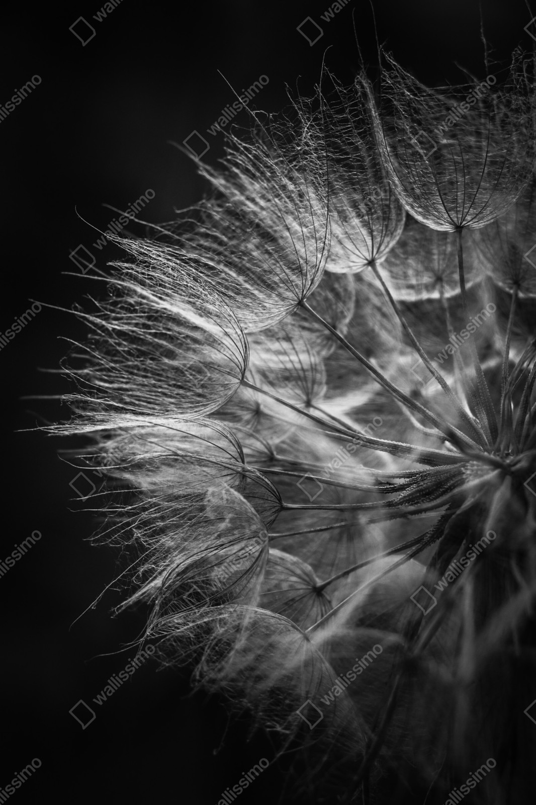 Delikatne, czarno-białe zbliżenie dmuchawca, które wprowadza subtelną botaniczną elegancję do wnętrza.