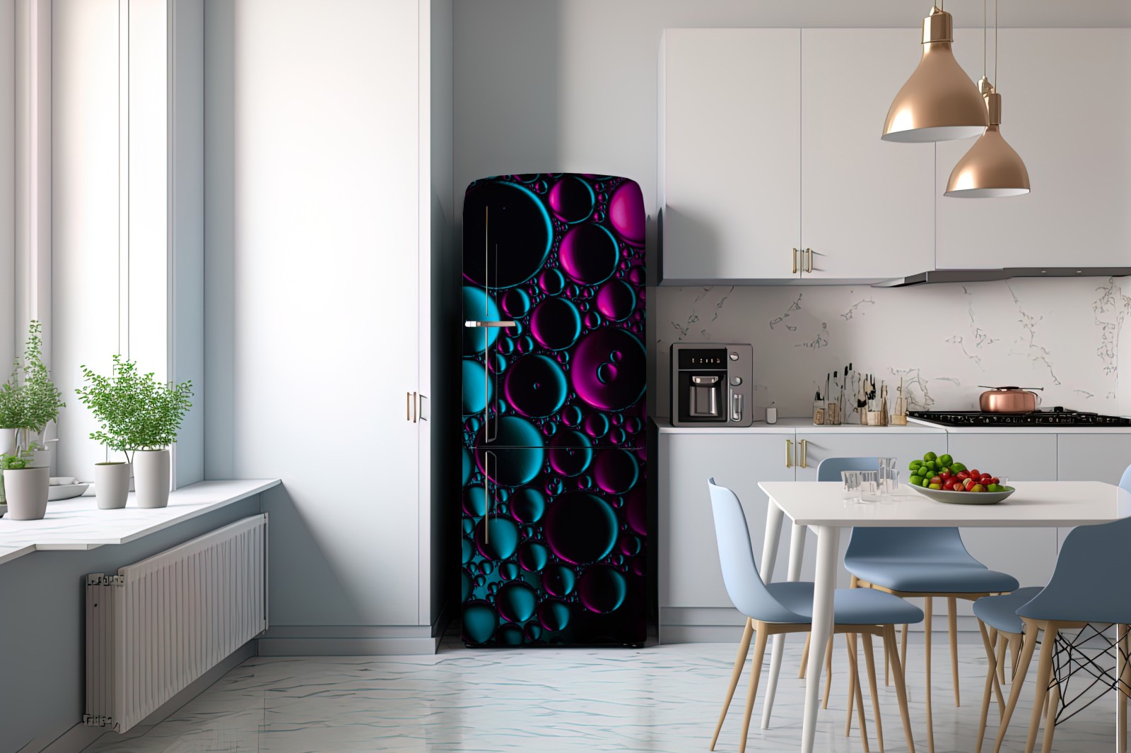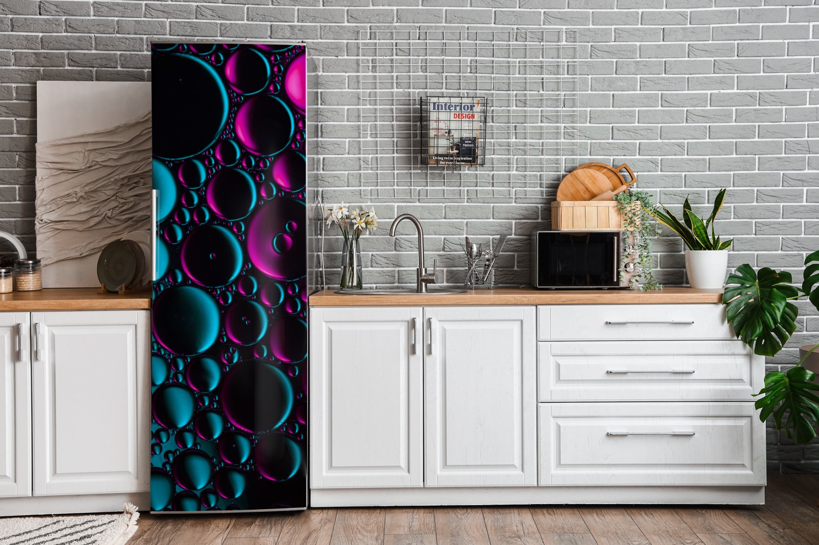 Naklejka na lodówkę Turkusowo-magenta wzór bąbelków