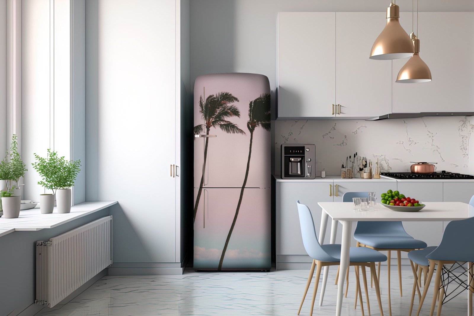 Naklejka na lodówkę Pastelowe palmy o zmierzchu