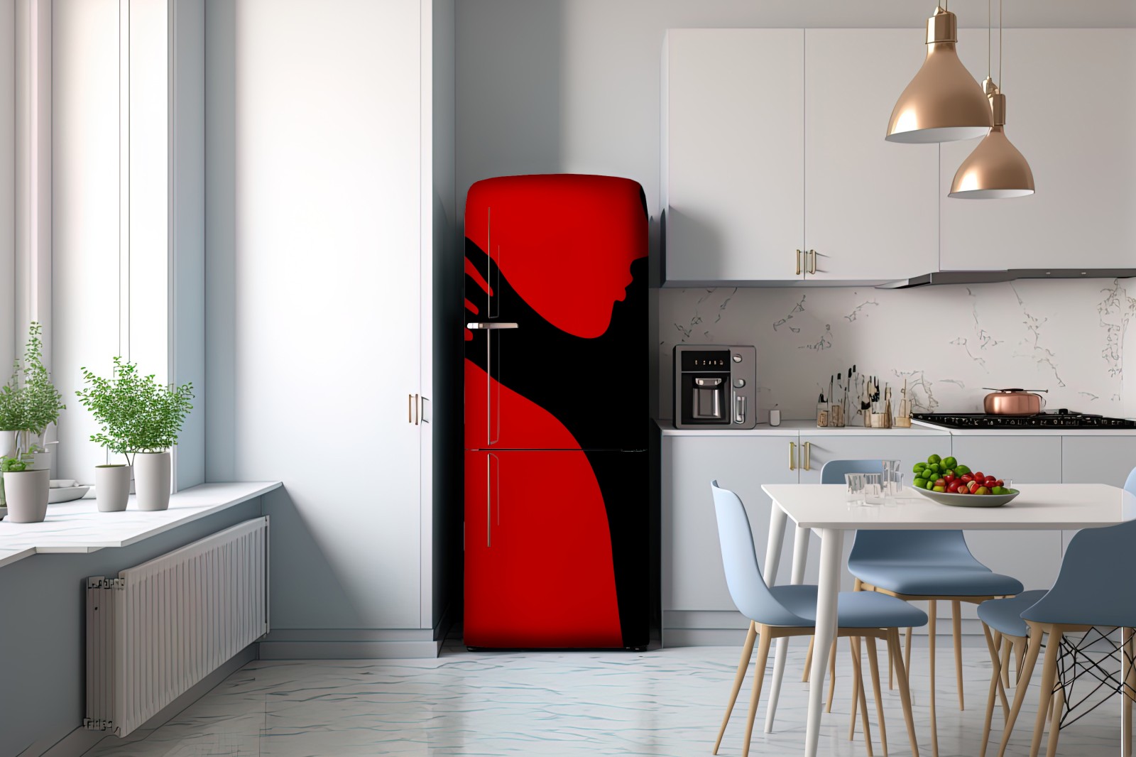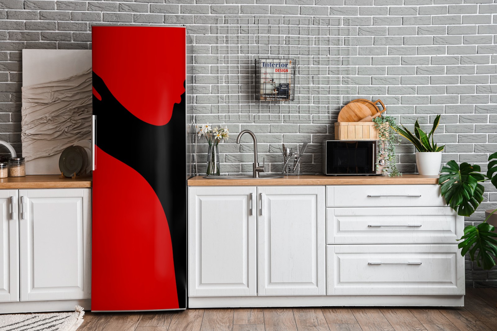 Naklejka na lodówkę Odważna czerwono-czarna sylwetka