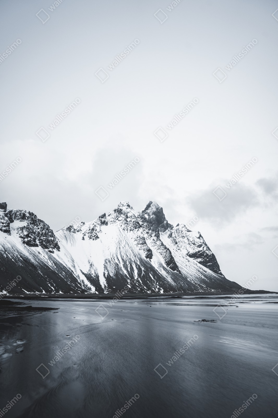Dodaj do wnętrza spokojny czarno-biały krajobraz górski nad morzem, który wprowadza minimalizm i harmonię.
