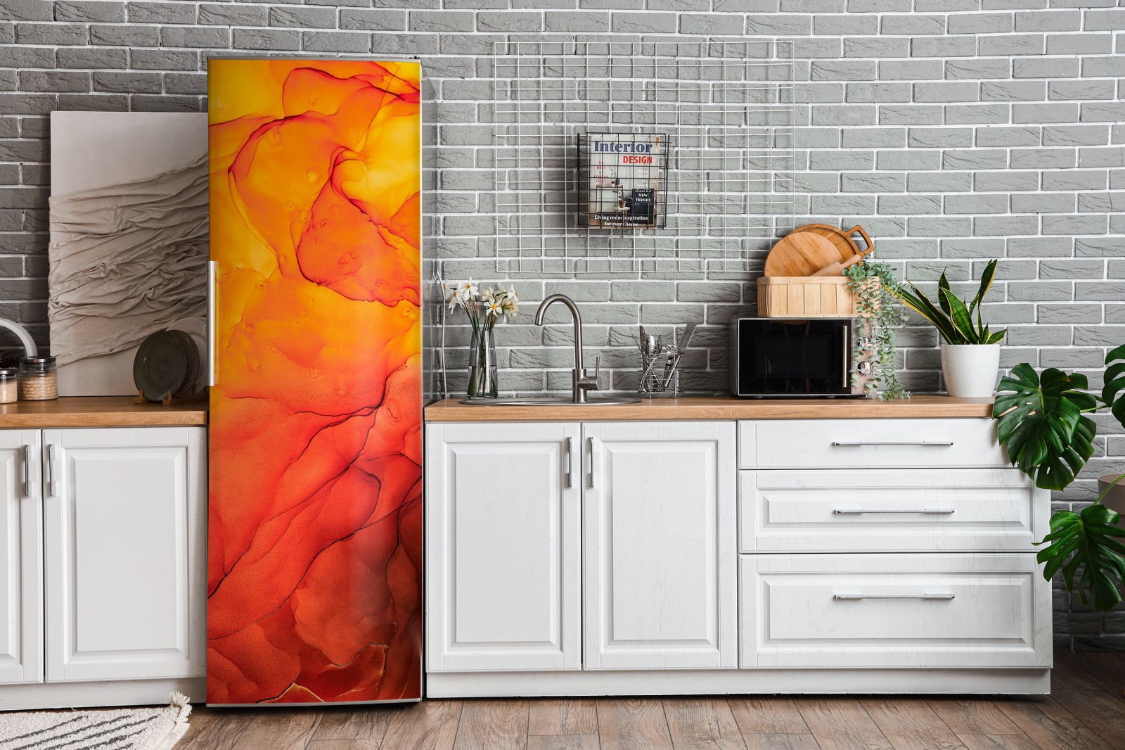 Naklejka na lodówkę Abstrakcja alkoholowa w odcieniach pomarańczy
