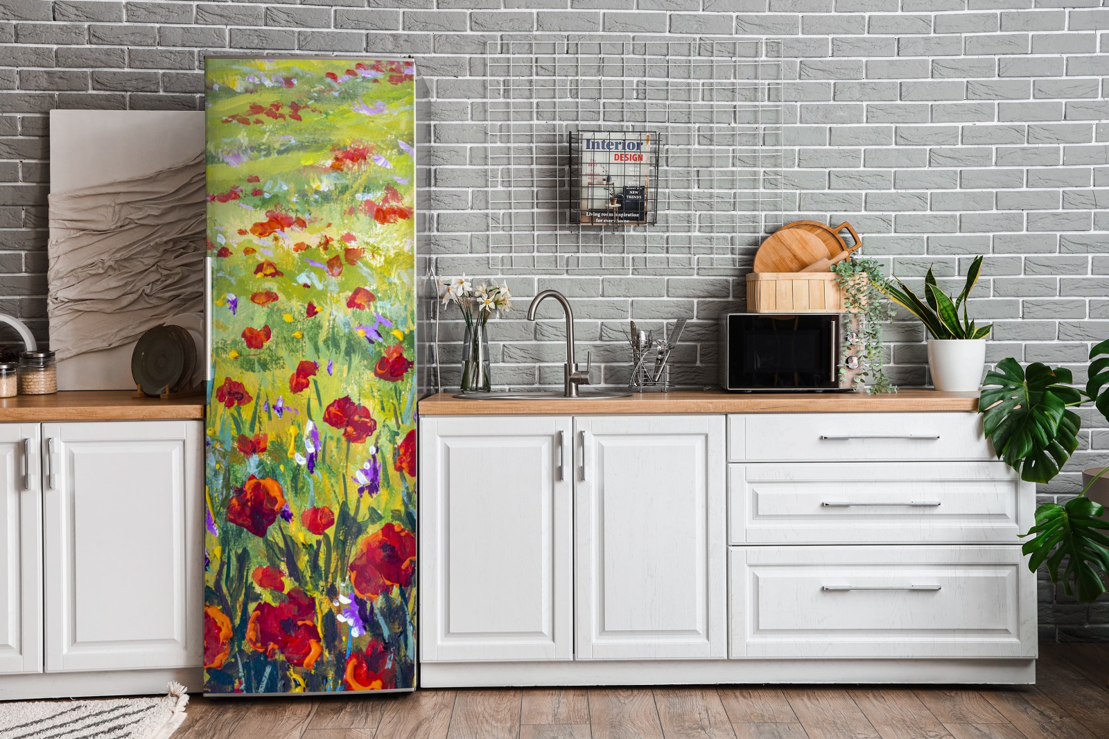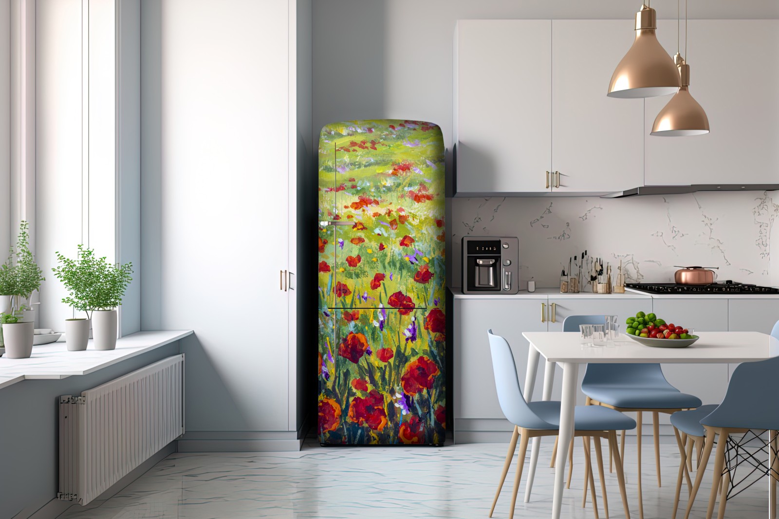 Naklejka na lodówkę Impresjonistyczna łąka z makami