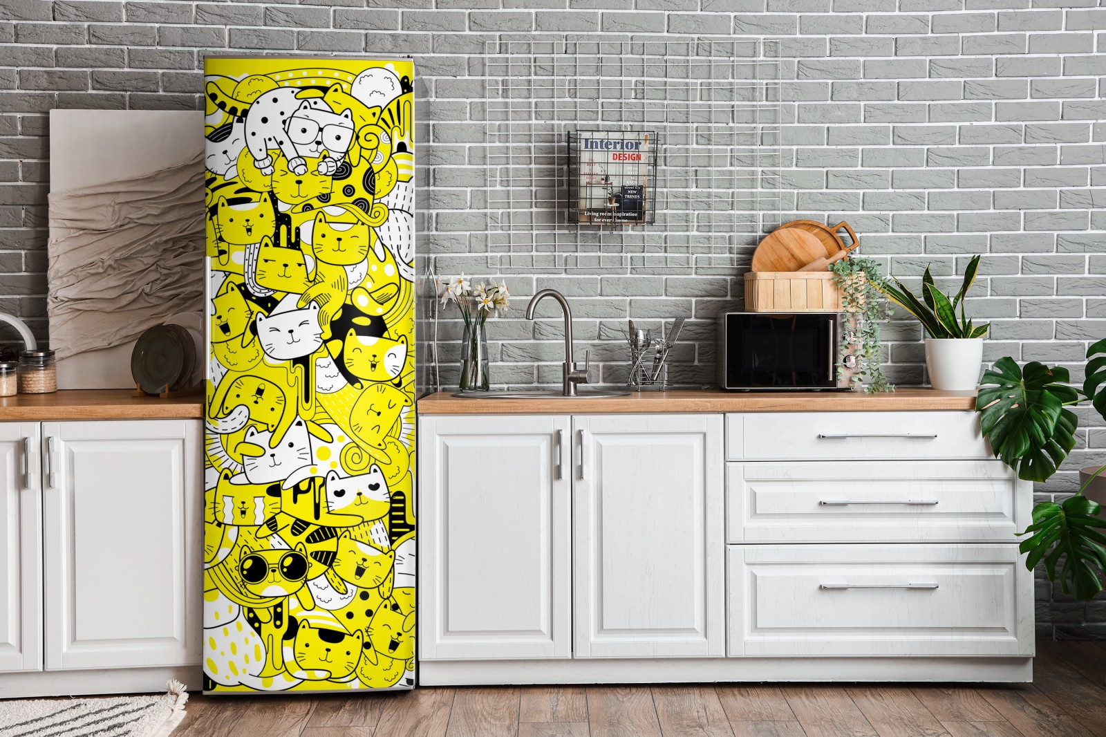 Naklejka na lodówkę Zabawna żółta mozaika kotów