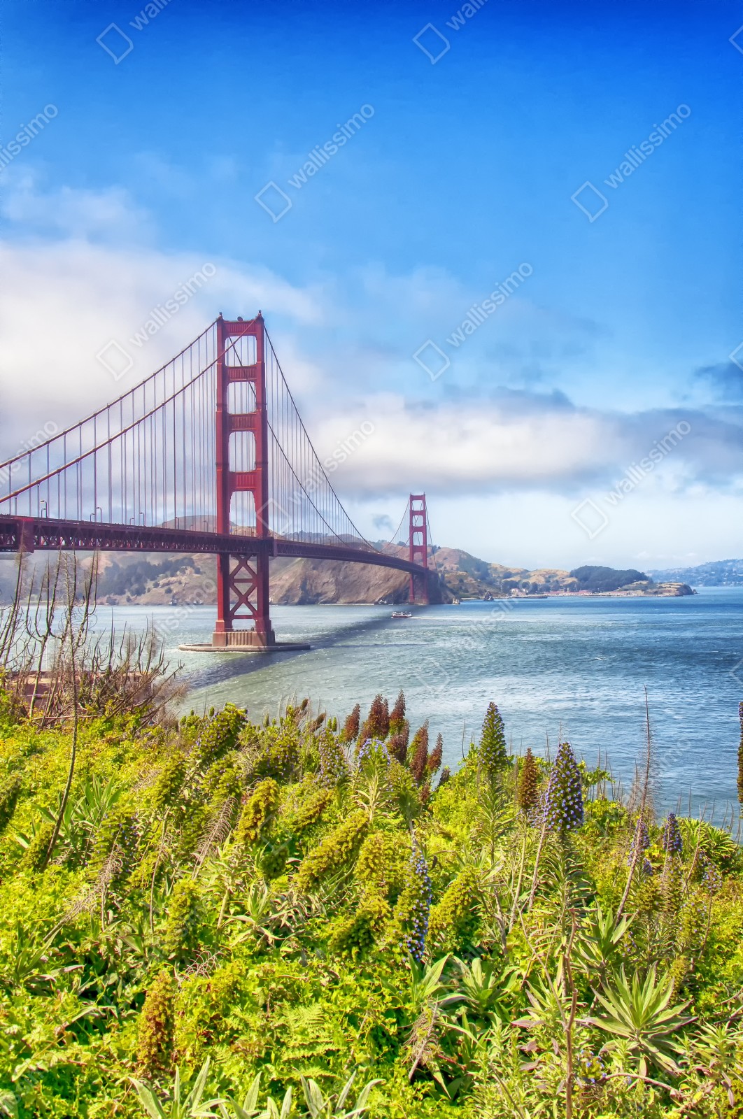 Dodaj ikoniczny widok San Francisco do swojego wnętrza dzięki temu wyrazistemu obrazowi przedstawiającemu Golden Gate i wzgórza Marin pod błękitnym niebem.
