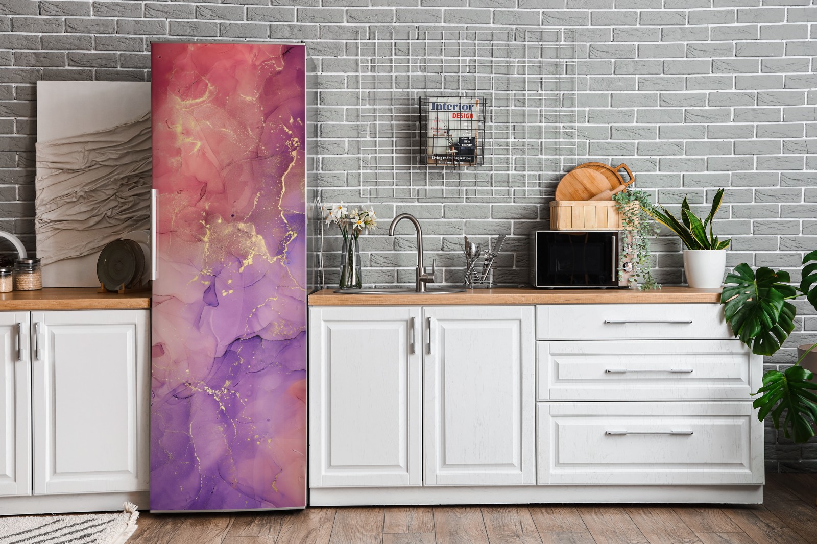 Naklejka na lodówkę Eteryczna różowo-fioletowa marmurowa grafika