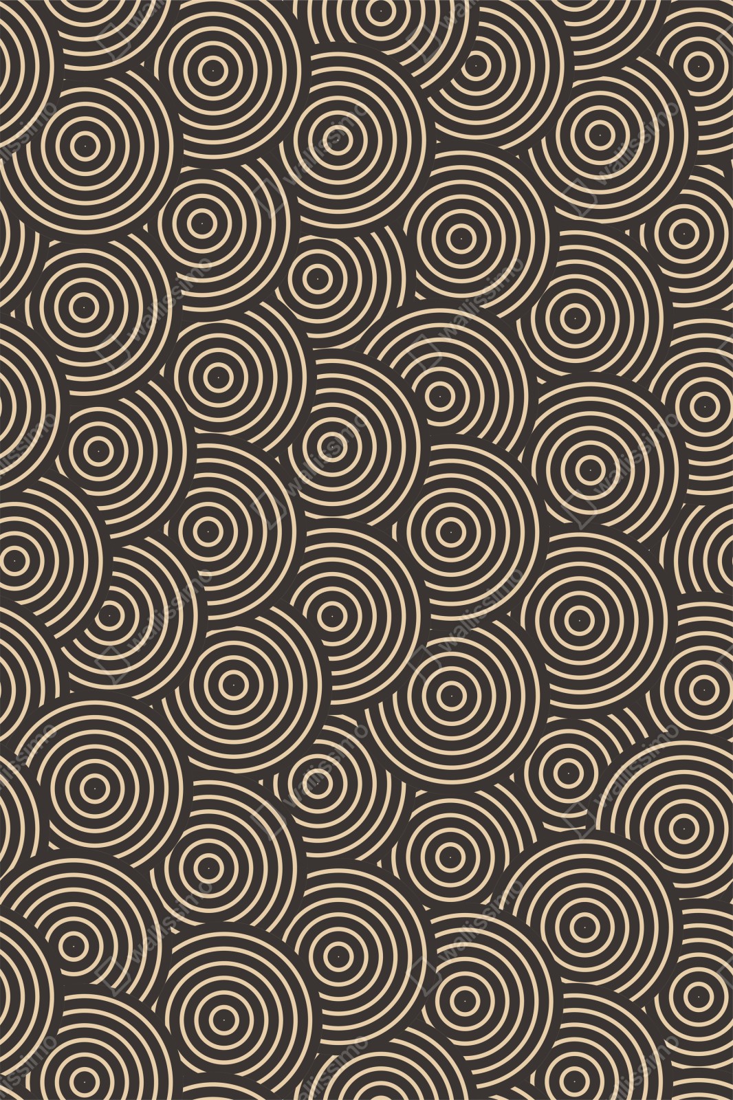 Dodaj ponadczasową geometryczną elegancję do wnętrza dzięki retro wzorowi beżowych i czarnych koncentrycznych kół, który dodaje głębi i stylu każdemu pomieszczeniu.