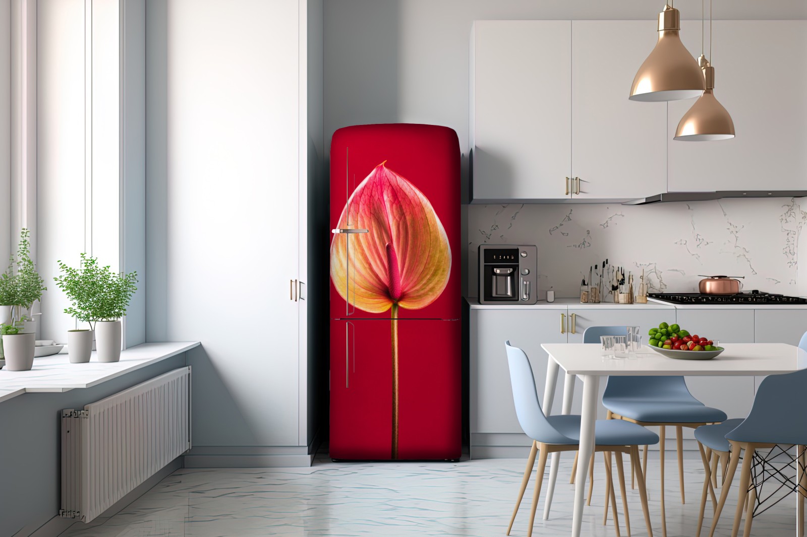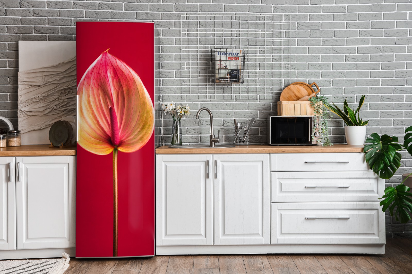 Naklejka na lodówkę Eleganckie anturium na czerwonym tle