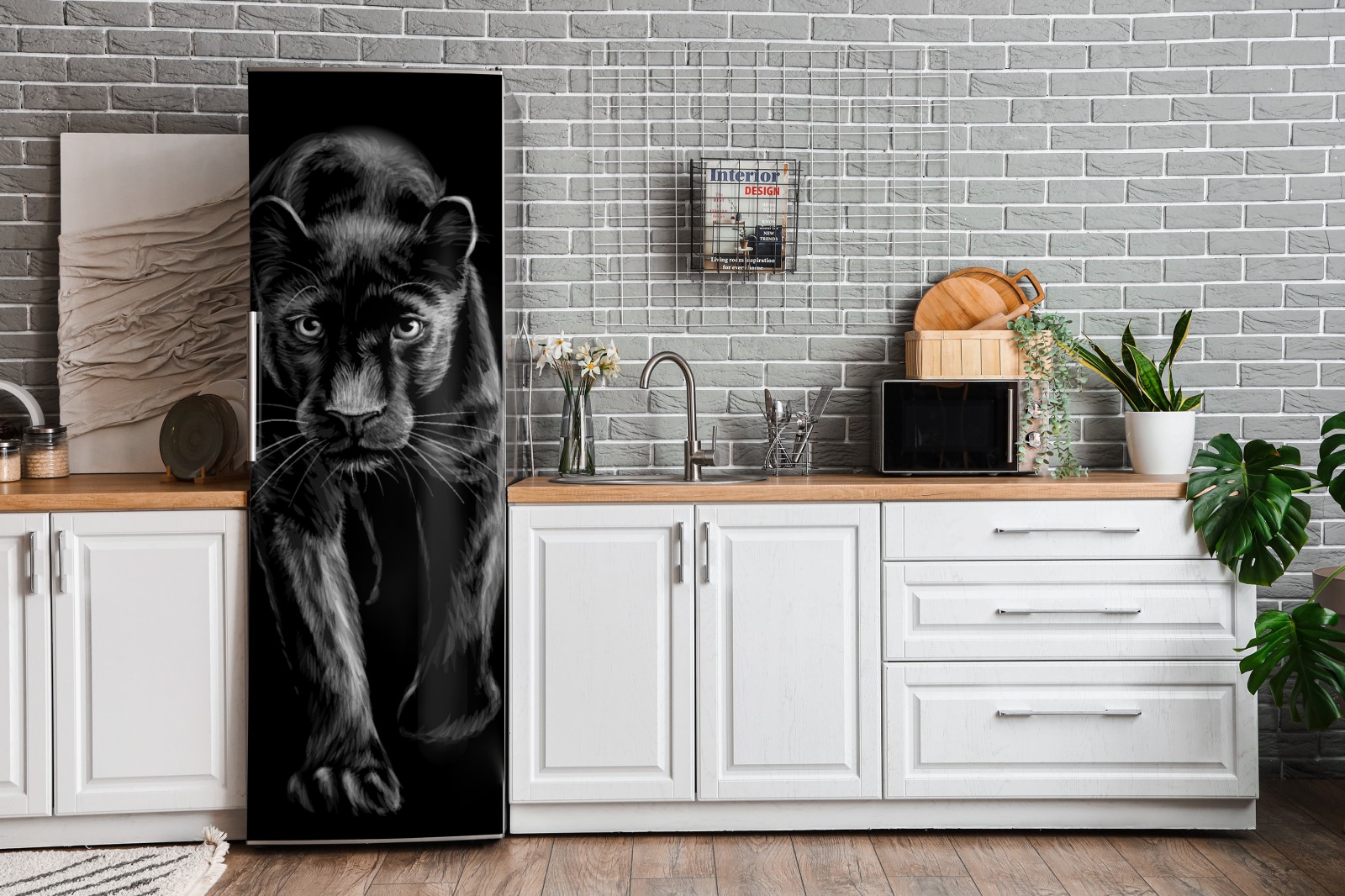 Naklejka na lodówkę Krocząca czarna pantera ilustracja
