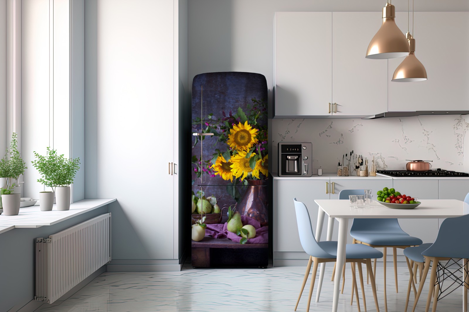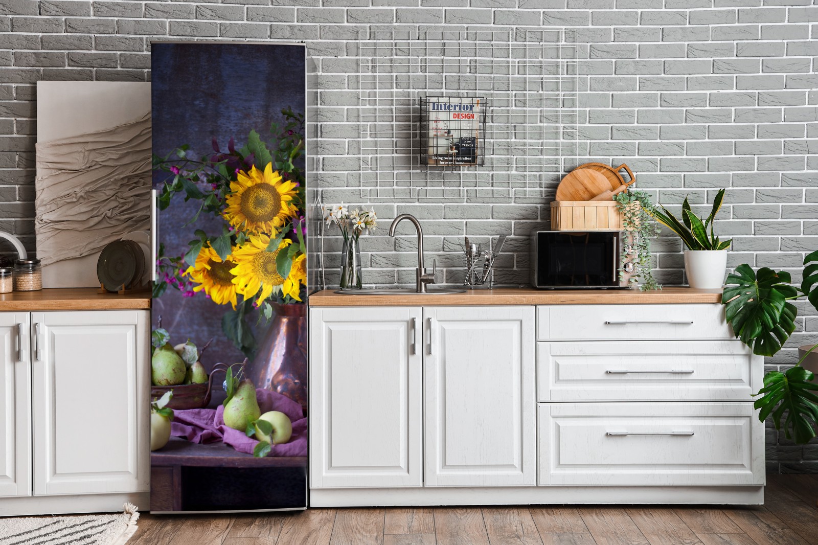 Naklejka na lodówkę Słoneczniki i gruszki rustykalna martwa natura