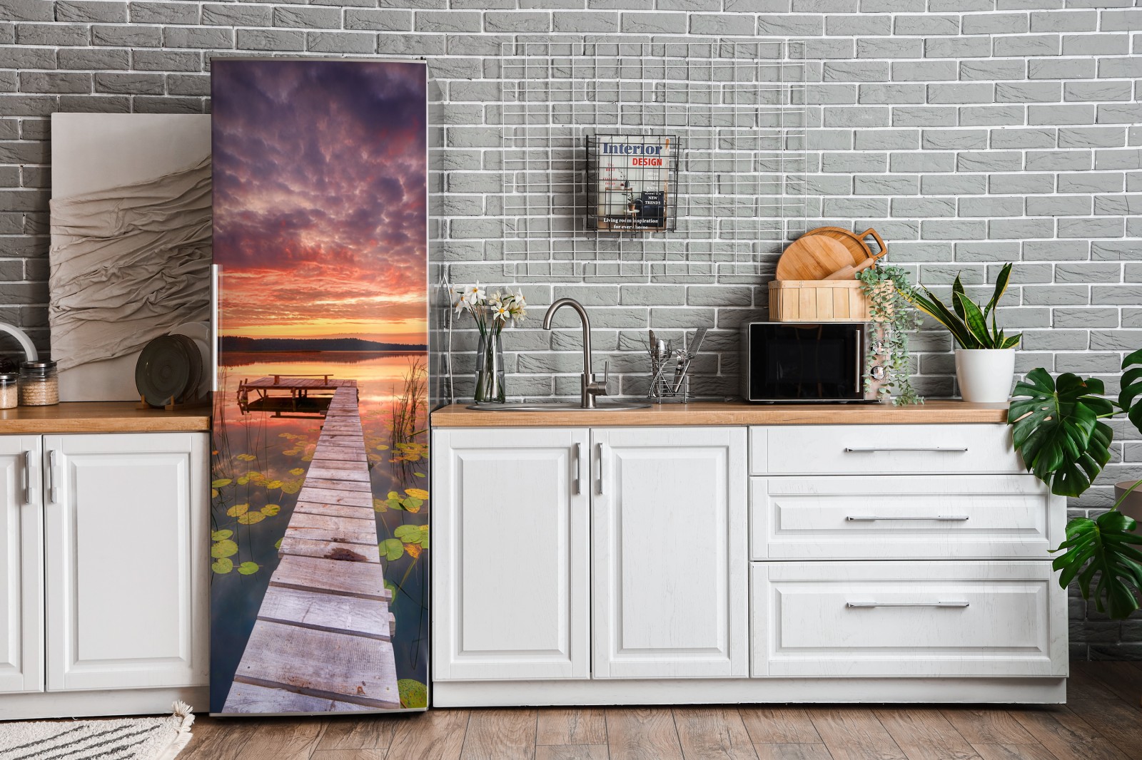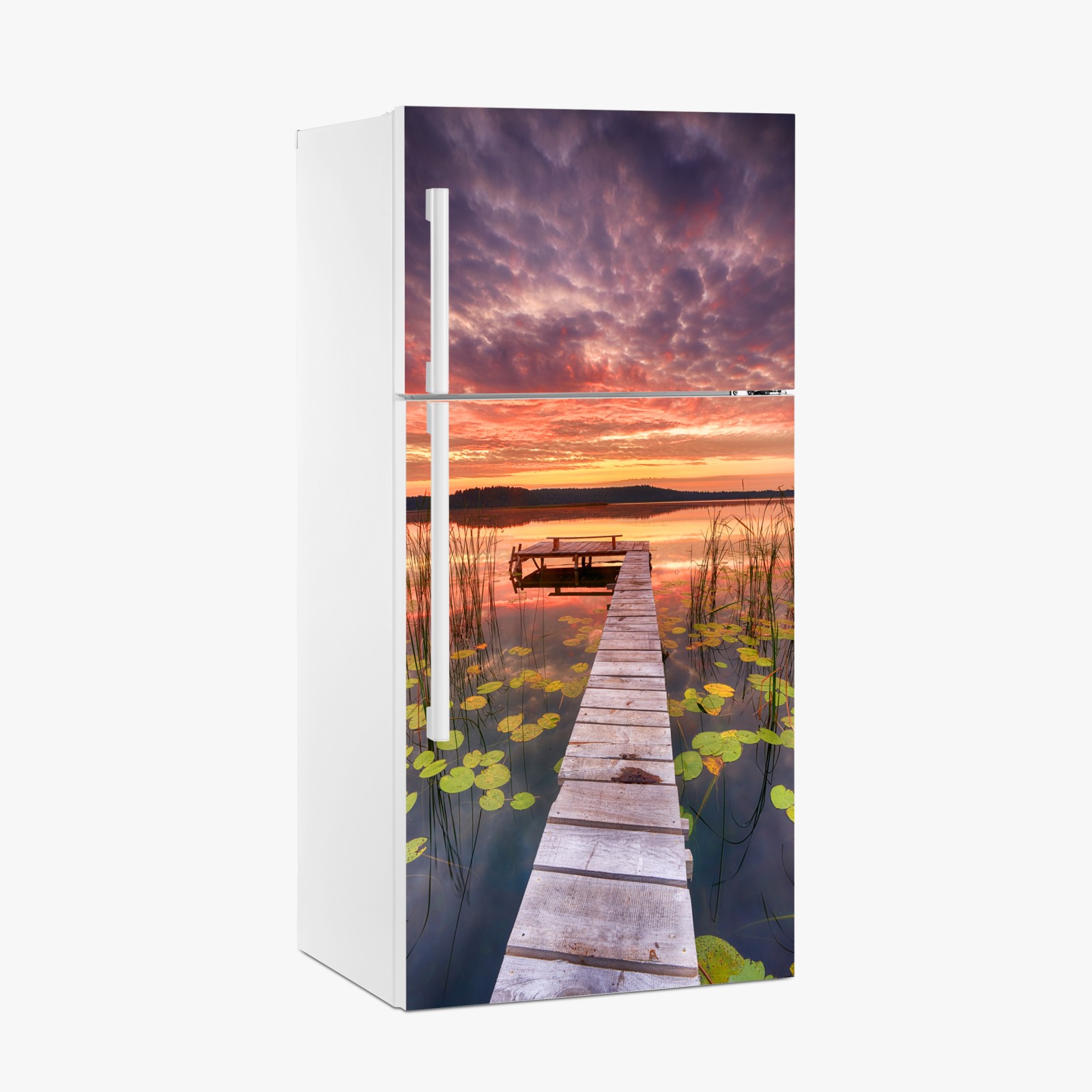 Naklejka na lodówkę Wschód słońca nad spokojnym jeziorem
