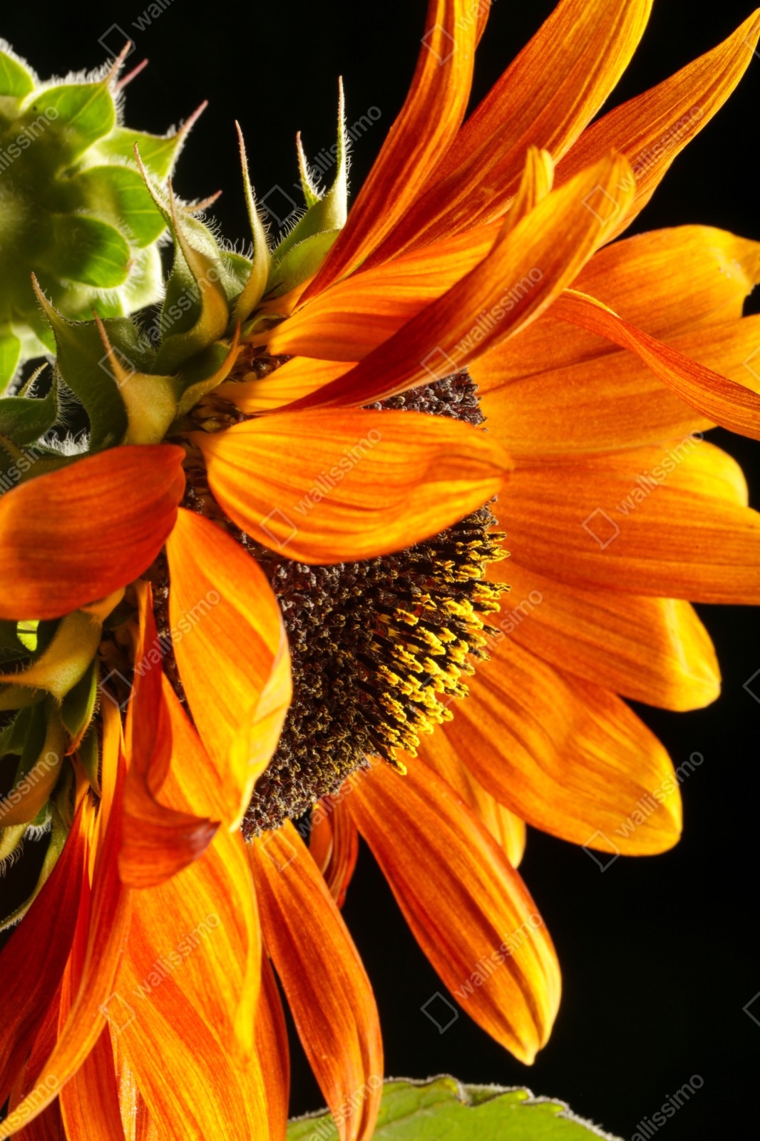 Rozświetl swoje wnętrze intensywnym zbliżeniem pomarańczowego słonecznika, które podkreśla fakturę płatków i naturalne ciepło.