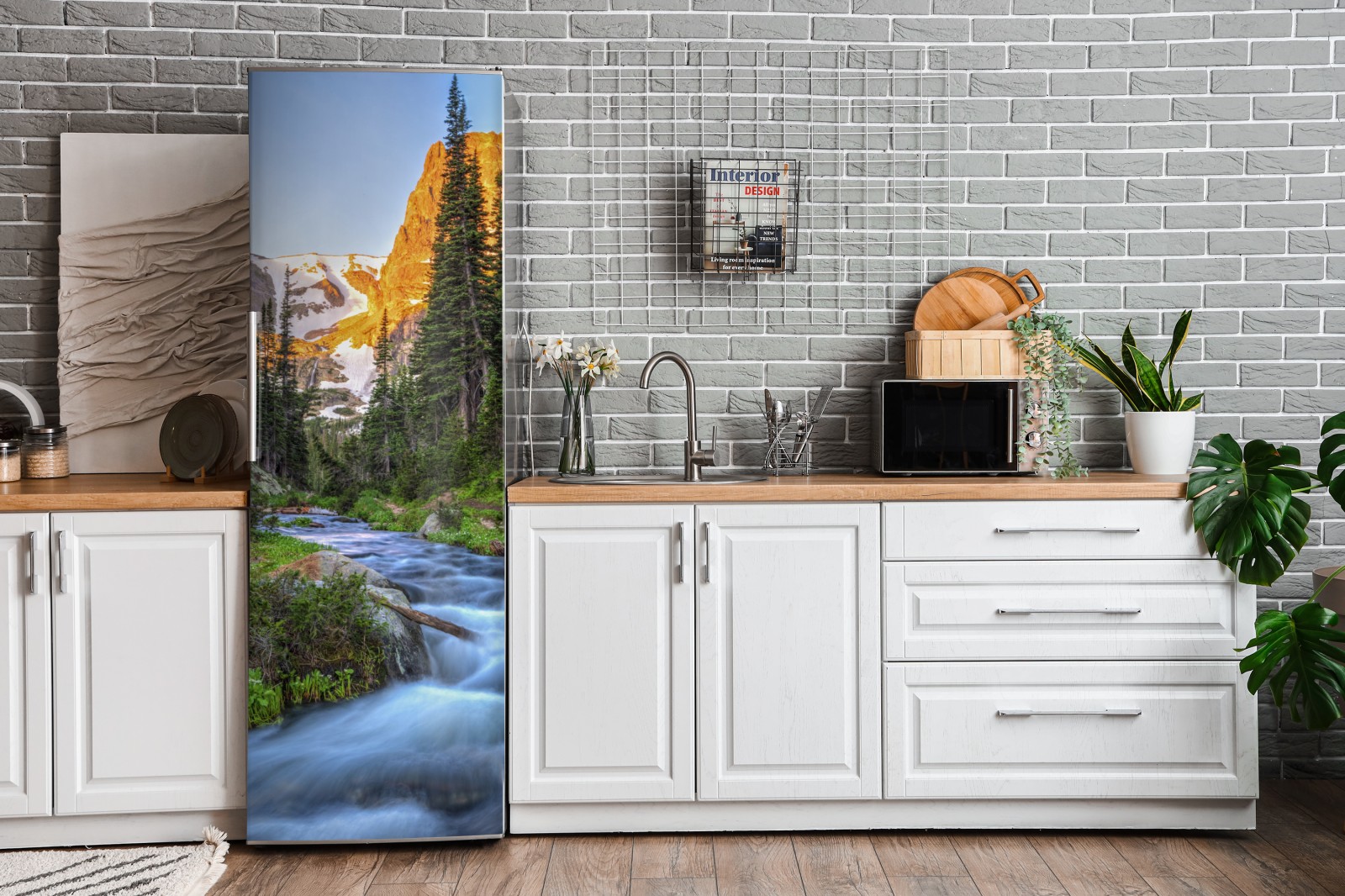 Naklejka na lodówkę Złoty szczyt nad alpejskim potokiem