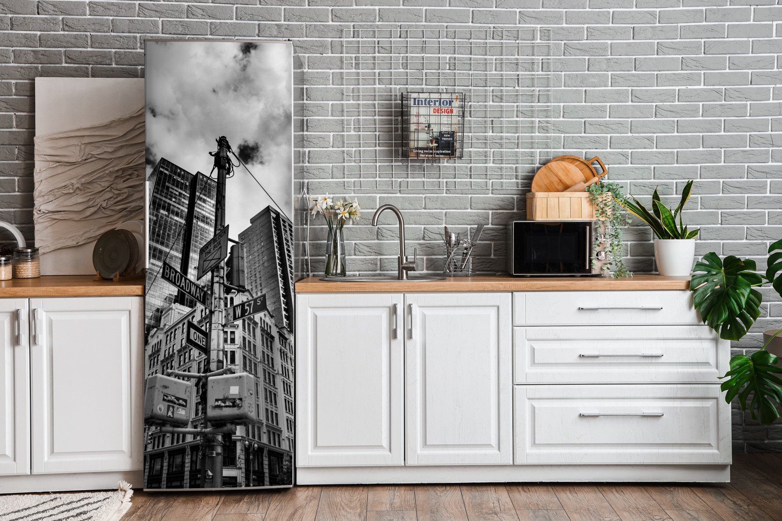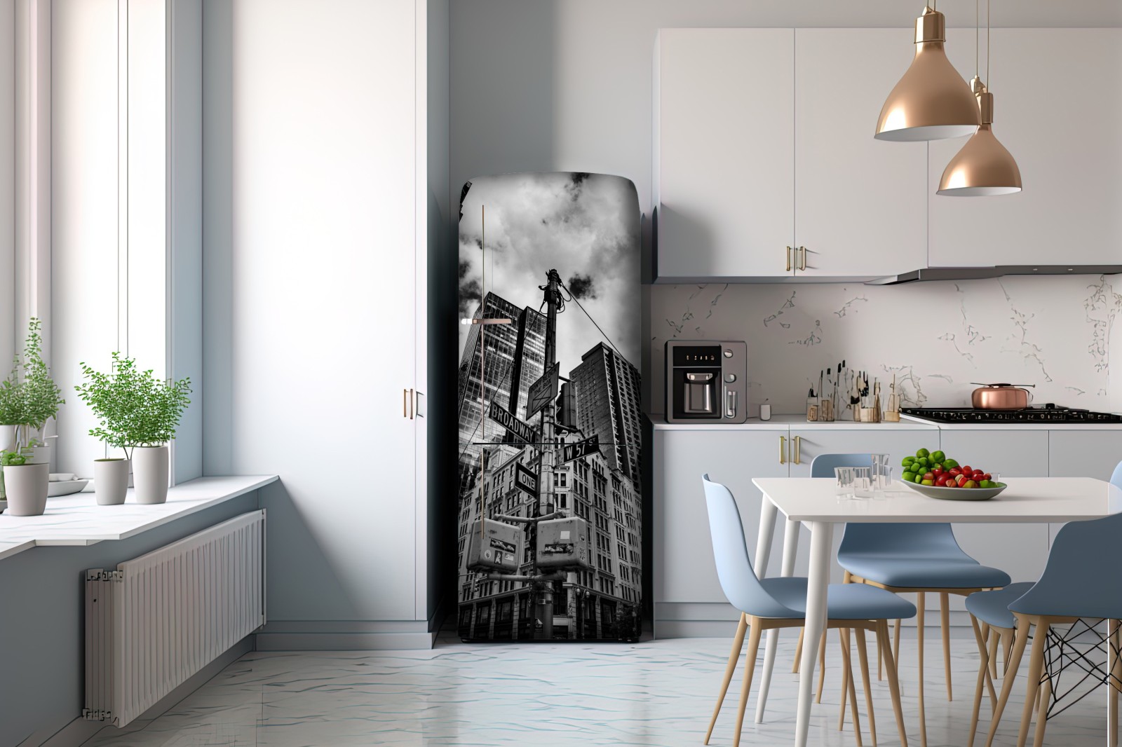 Naklejka na lodówkę Broadway i W 57 St — miejska panorama w czerni i bieli