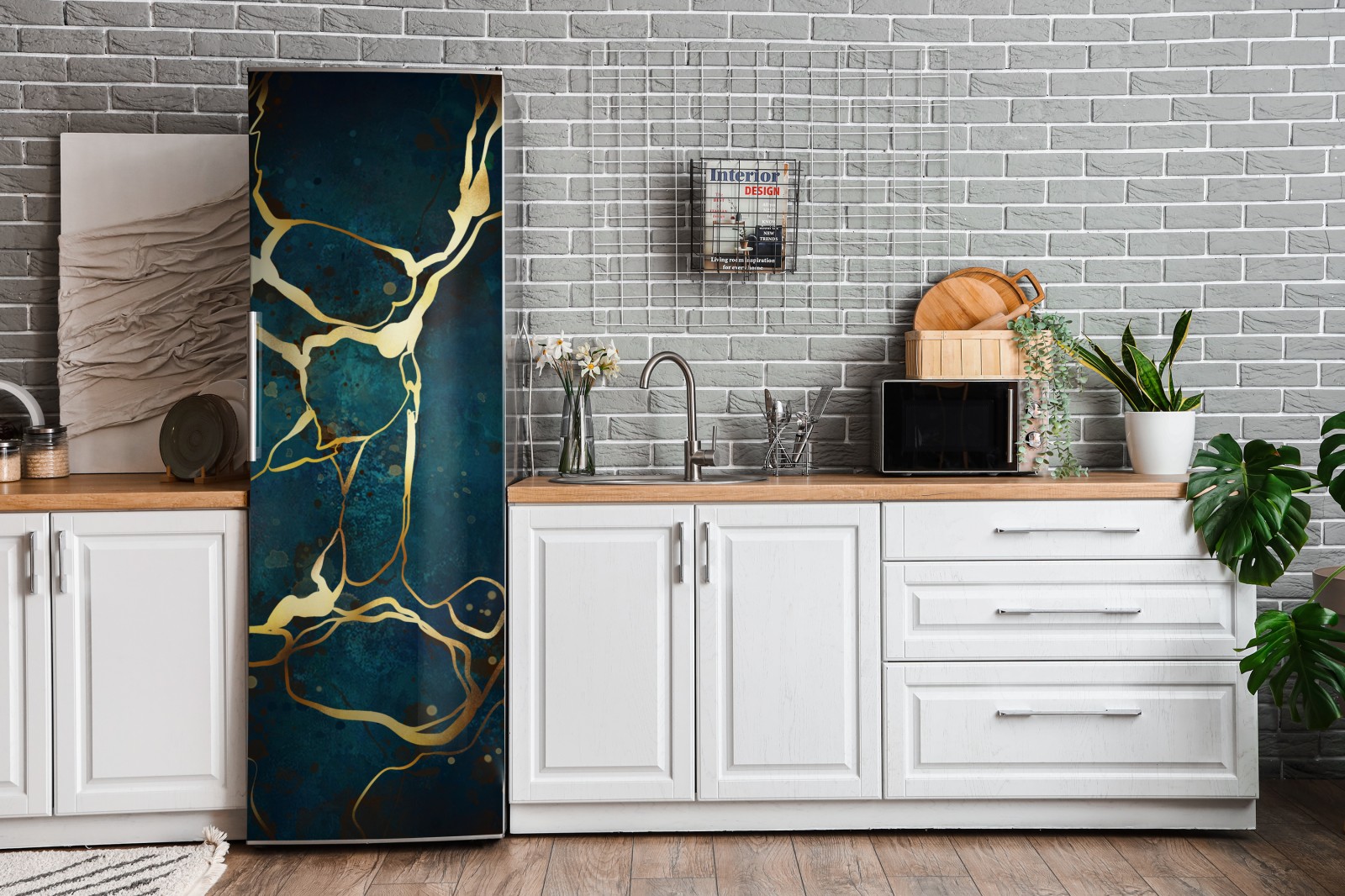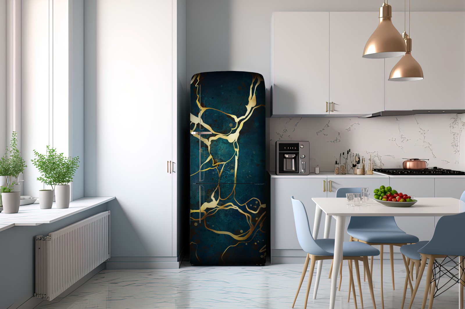 Naklejka na lodówkę Turkusowo-złota abstrakcja ze złotymi żyłami