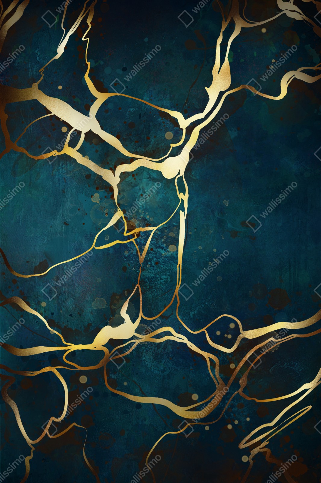 Dodaj wnętrzu luksusowego charakteru dzięki głębokim turkusowym fakturom i połyskującym złotym żyłom.