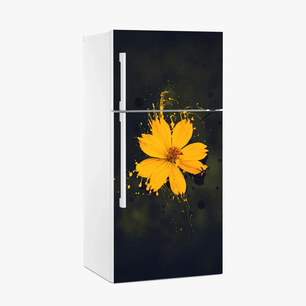 Naklejka na lodówkę Intensywny żółty kwiat na ciemnym tle