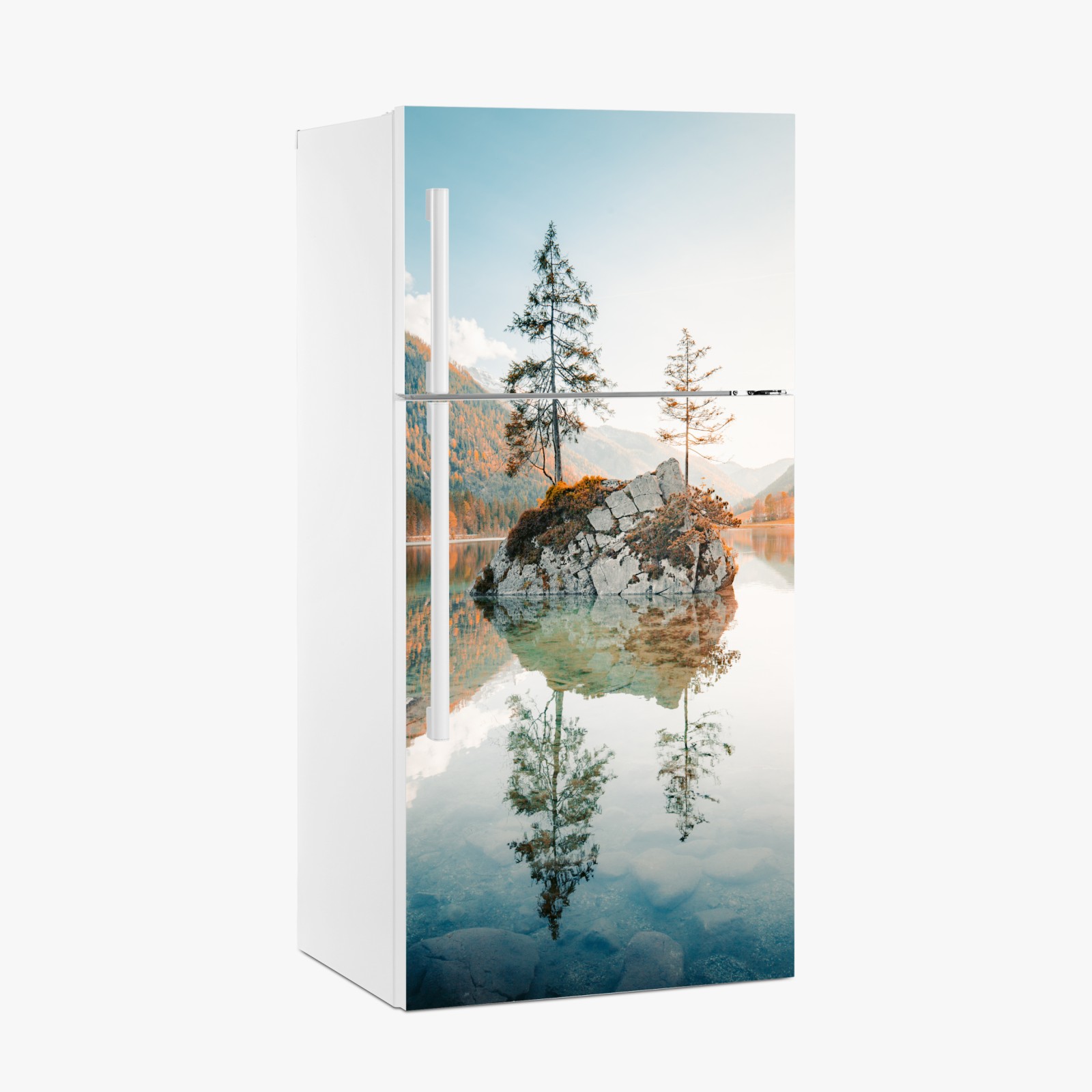 Naklejka na lodówkę Słoneczna skalna wyspa nad jeziorem Hintersee