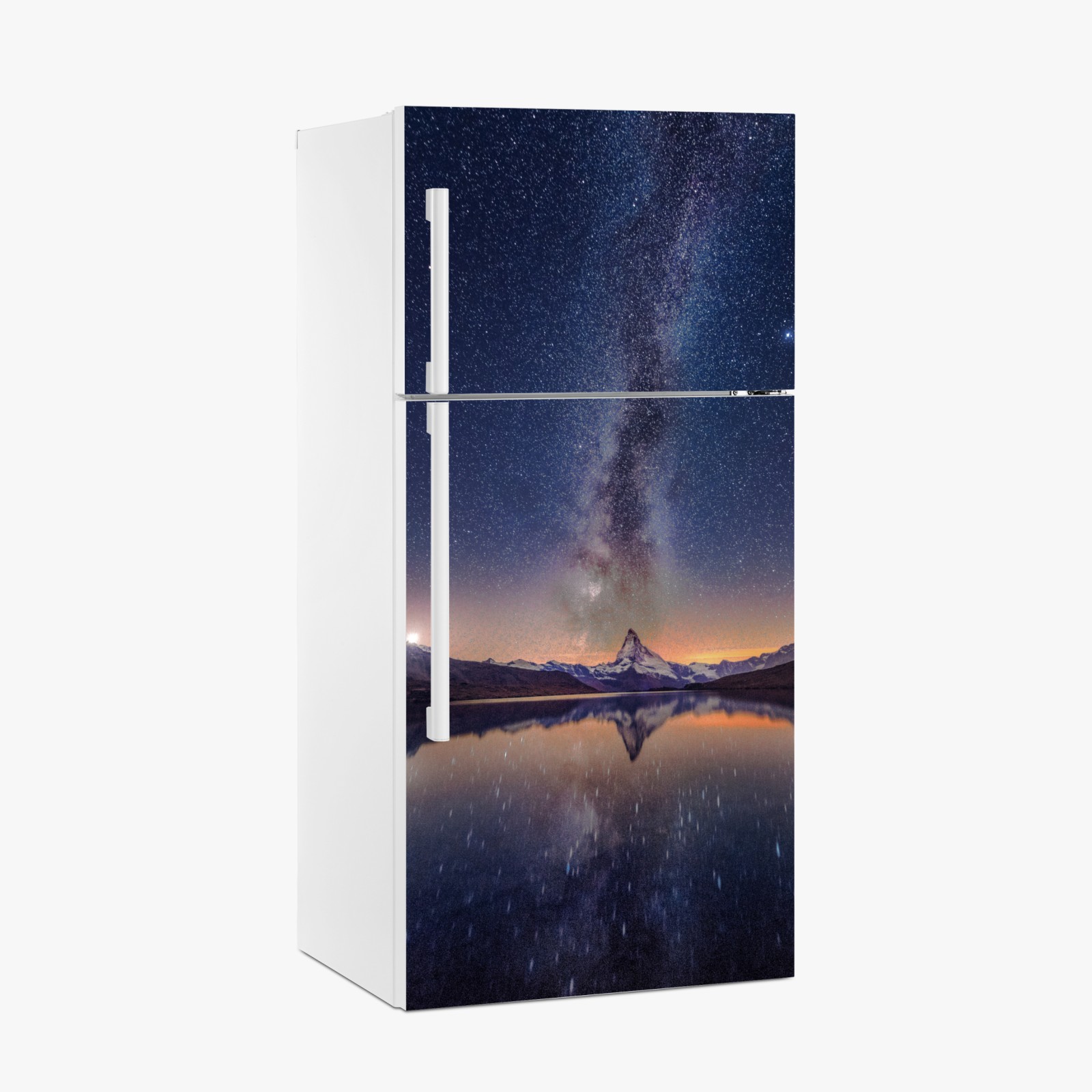 Naklejka na lodówkę Droga mleczna nad alpejskim szczytem odbita w jeziorze