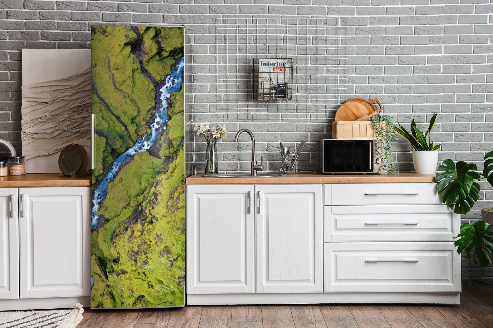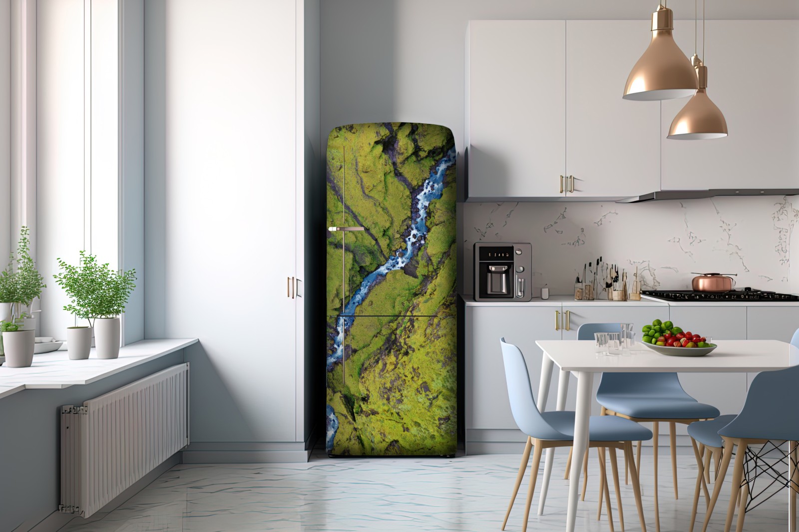 Naklejka na lodówkę Rzeka z lotu ptaka w mchem porośniętym wąwozie