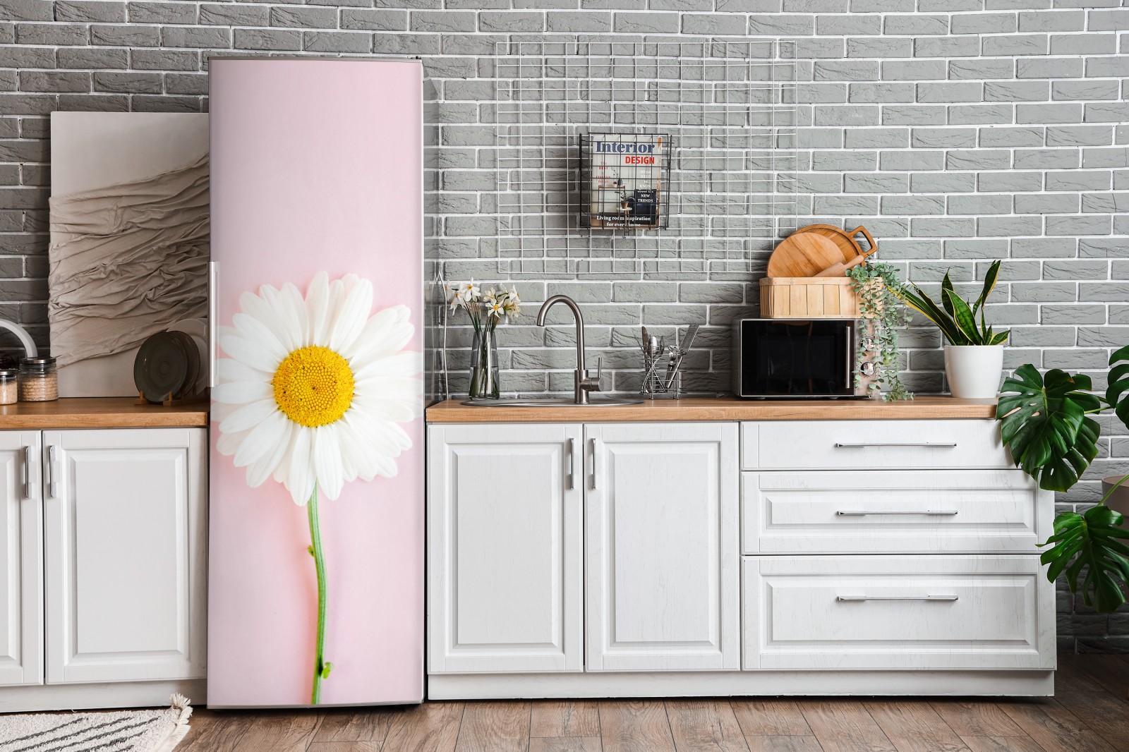 Naklejka na lodówkę Biała stokrotka na pastelowym różowym tle