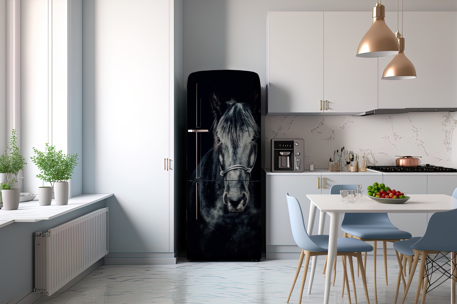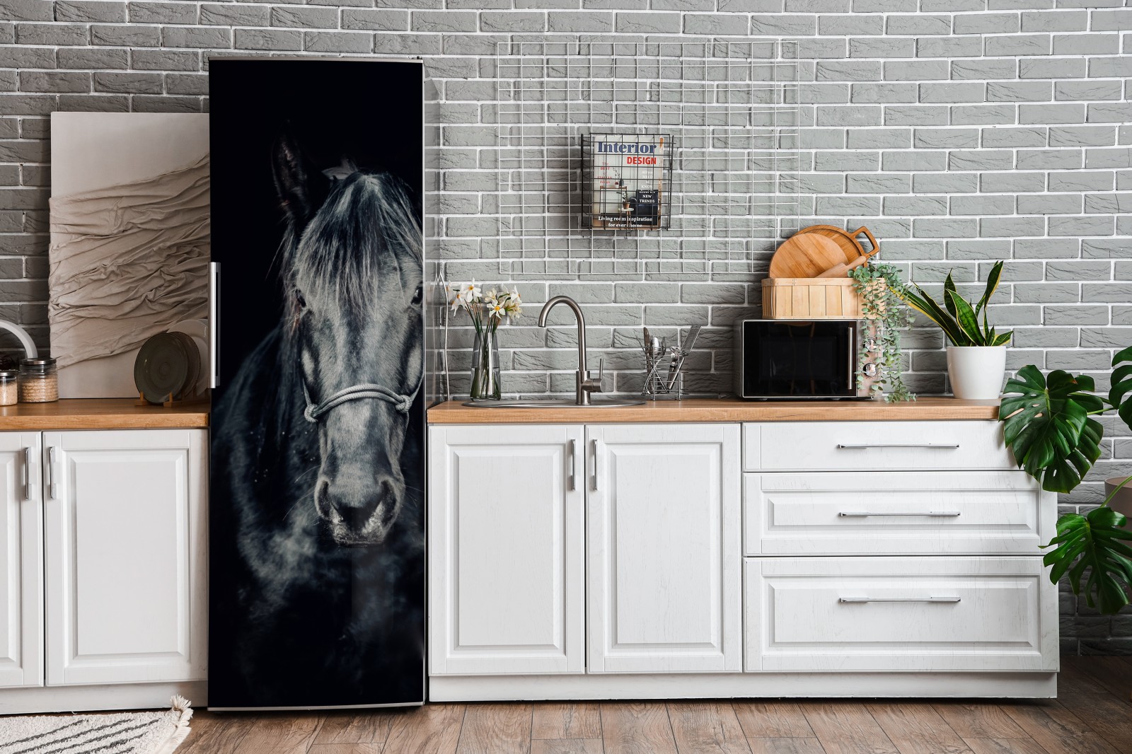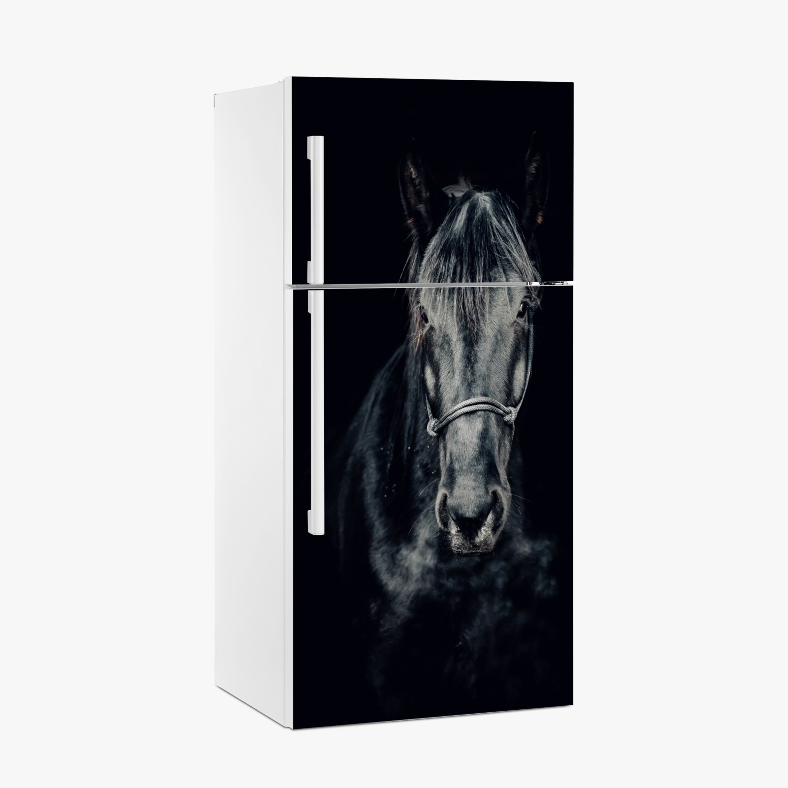 Naklejka na lodówkę Majestatyczny czarny portret konia