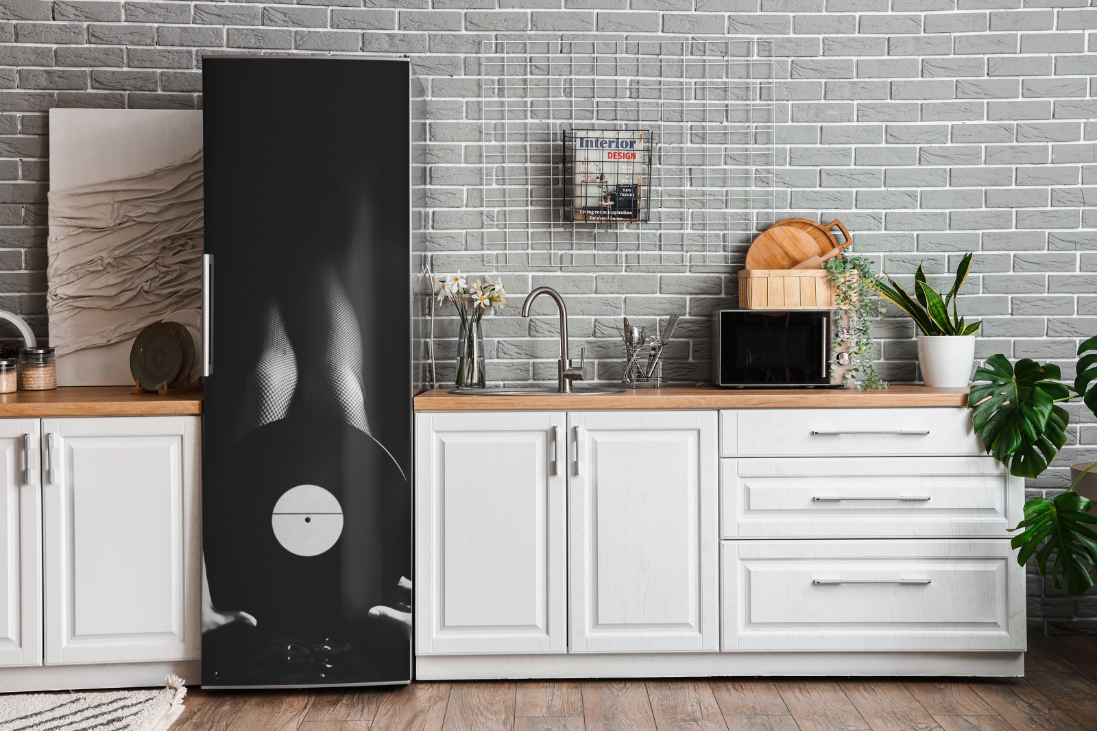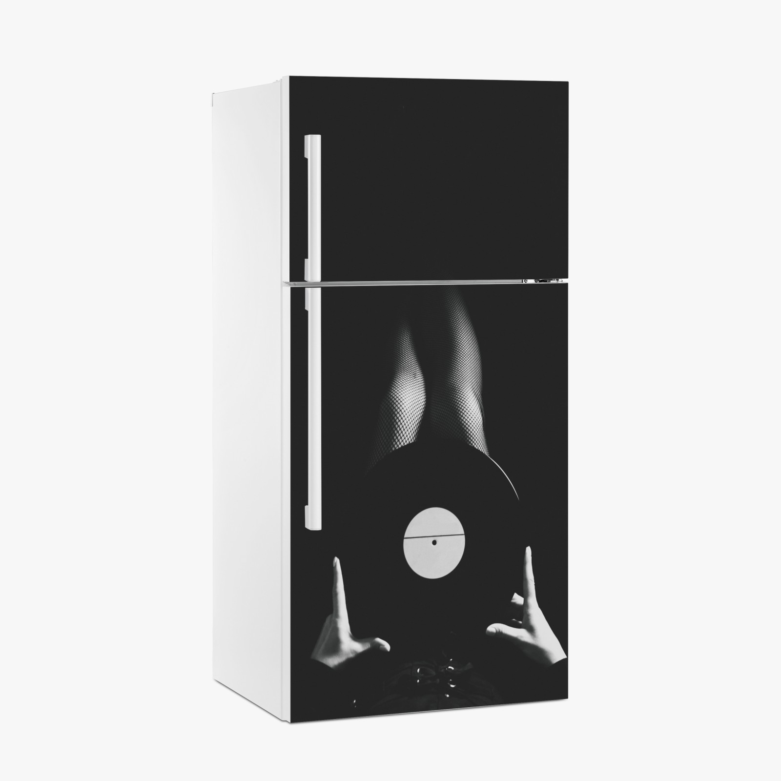 Naklejka na lodówkę Płyta winylowa i nogi w kabaretkach