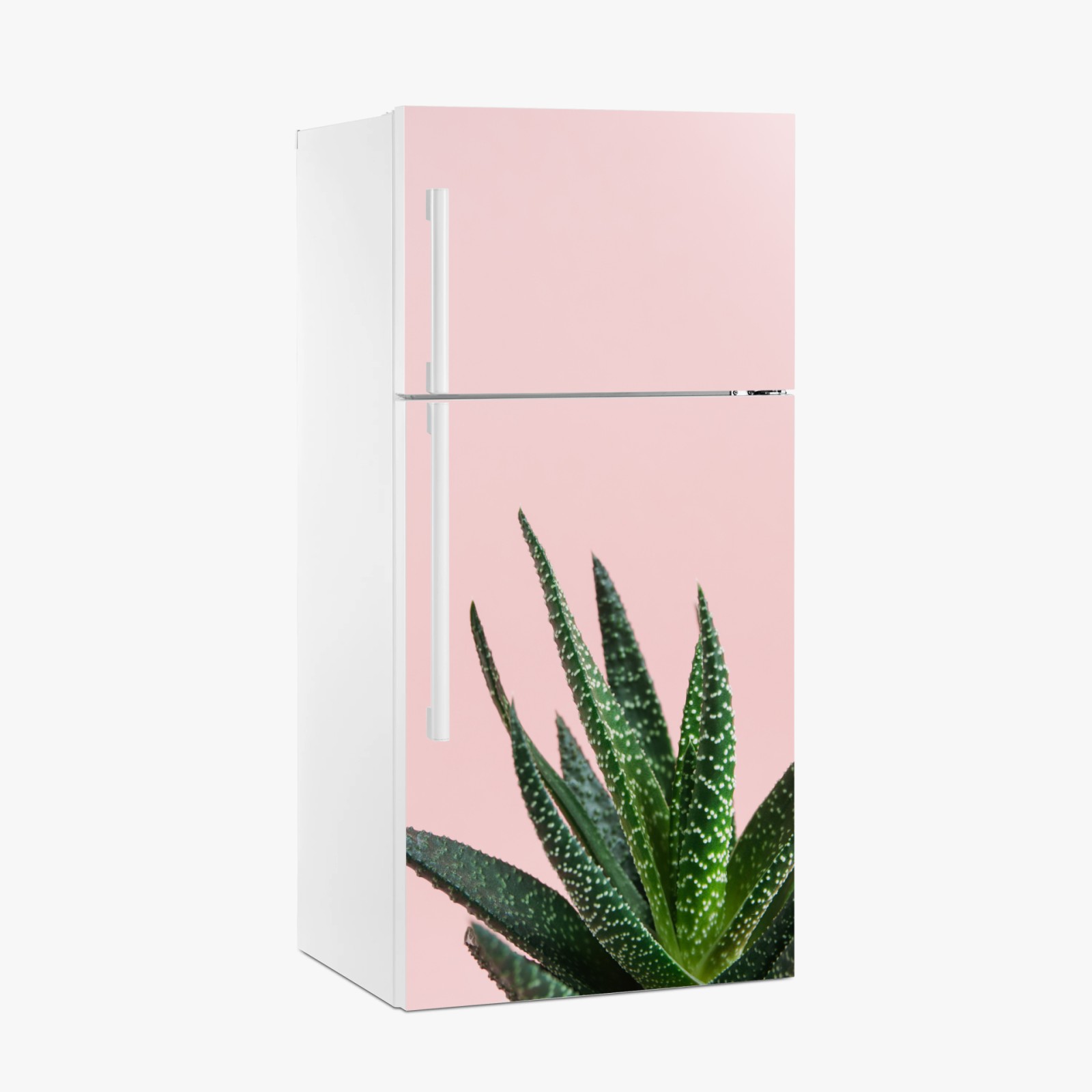 Naklejka na lodówkę Zielony aloes na różowym tle