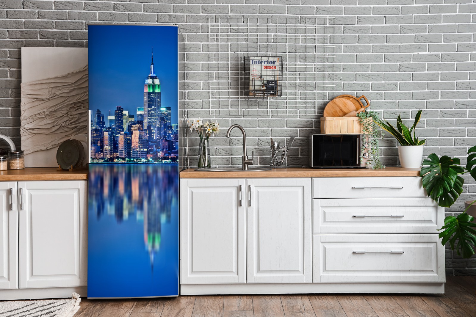 Naklejka na lodówkę Nowy Jork nocna panorama z odbiciem