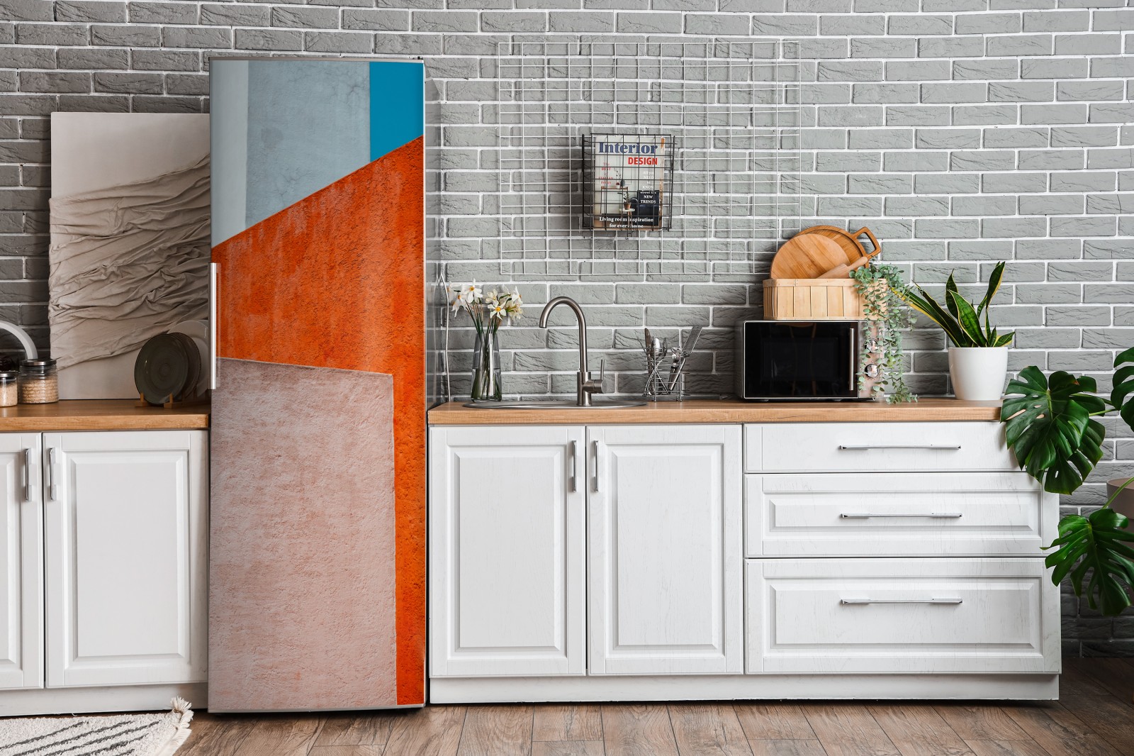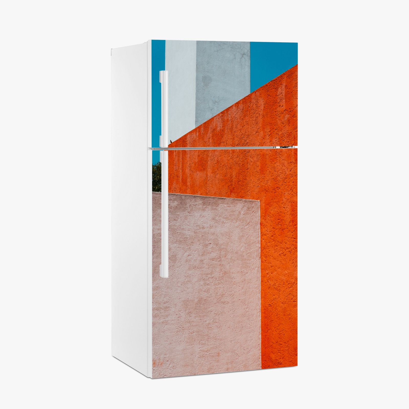 Naklejka na lodówkę Odważna geometryczna elewacja w pomarańczy i turkusie