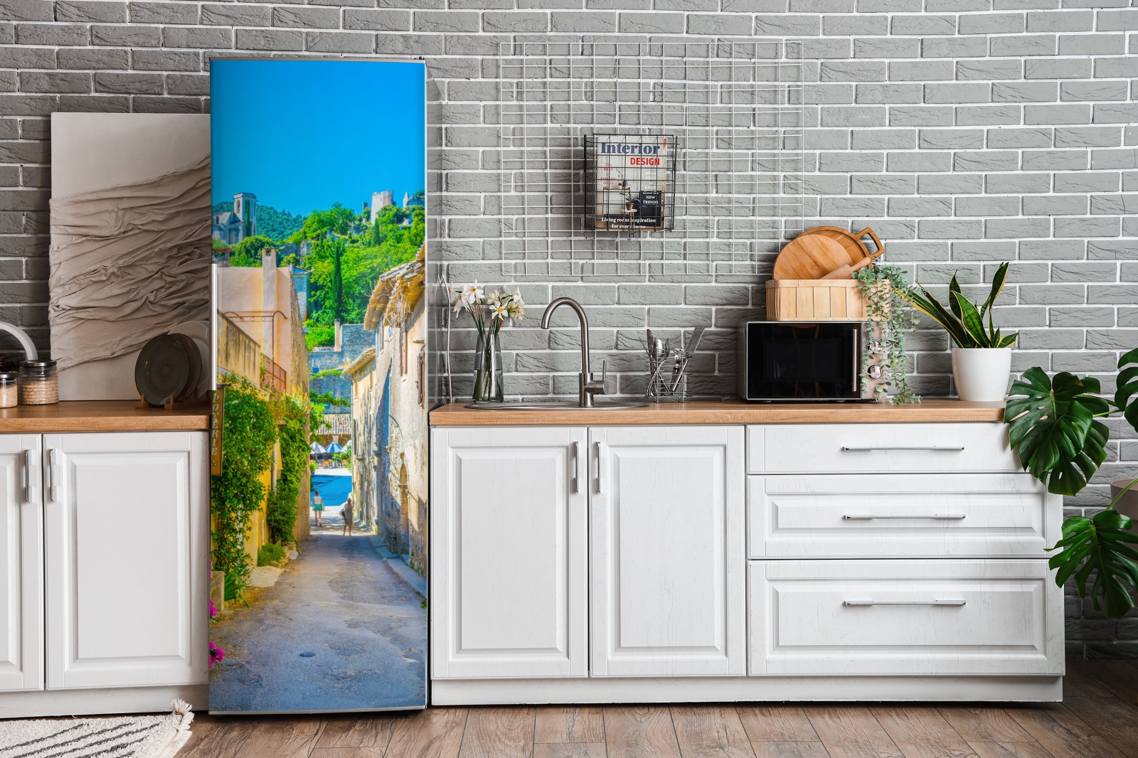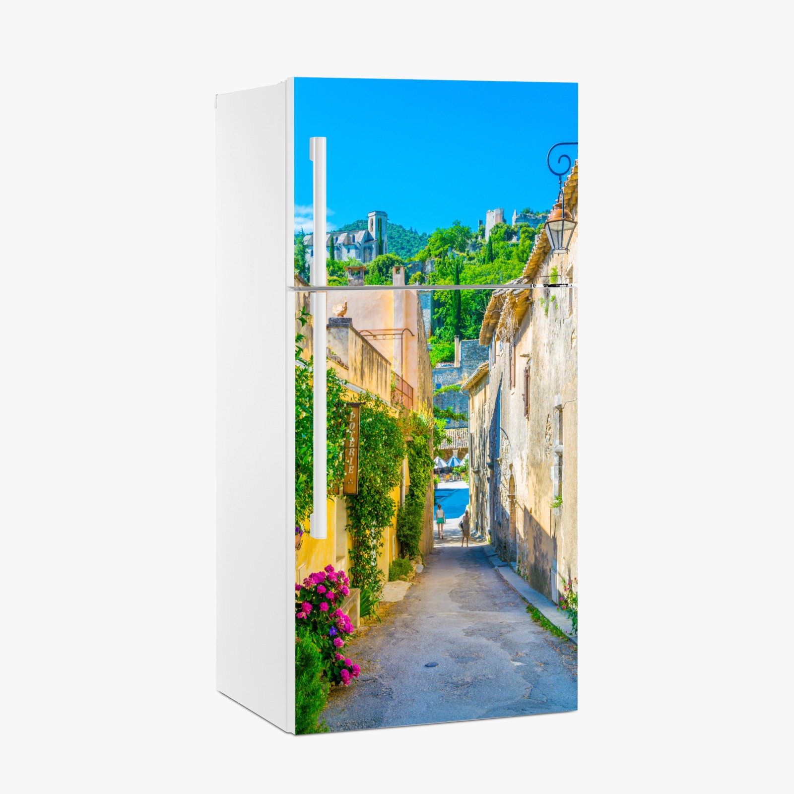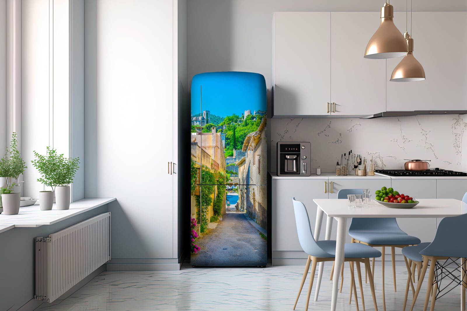 Naklejka na lodówkę Słoneczna uliczka wioski śródziemnomorskiej
