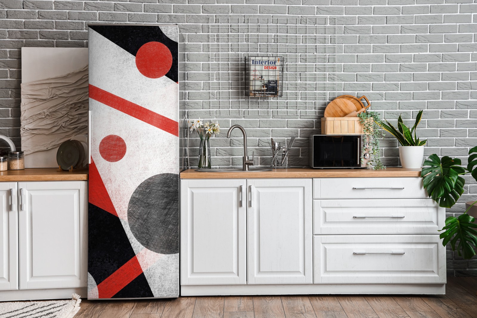Naklejka na lodówkę Geometryczna abstrakcja w czerwieni i czerni