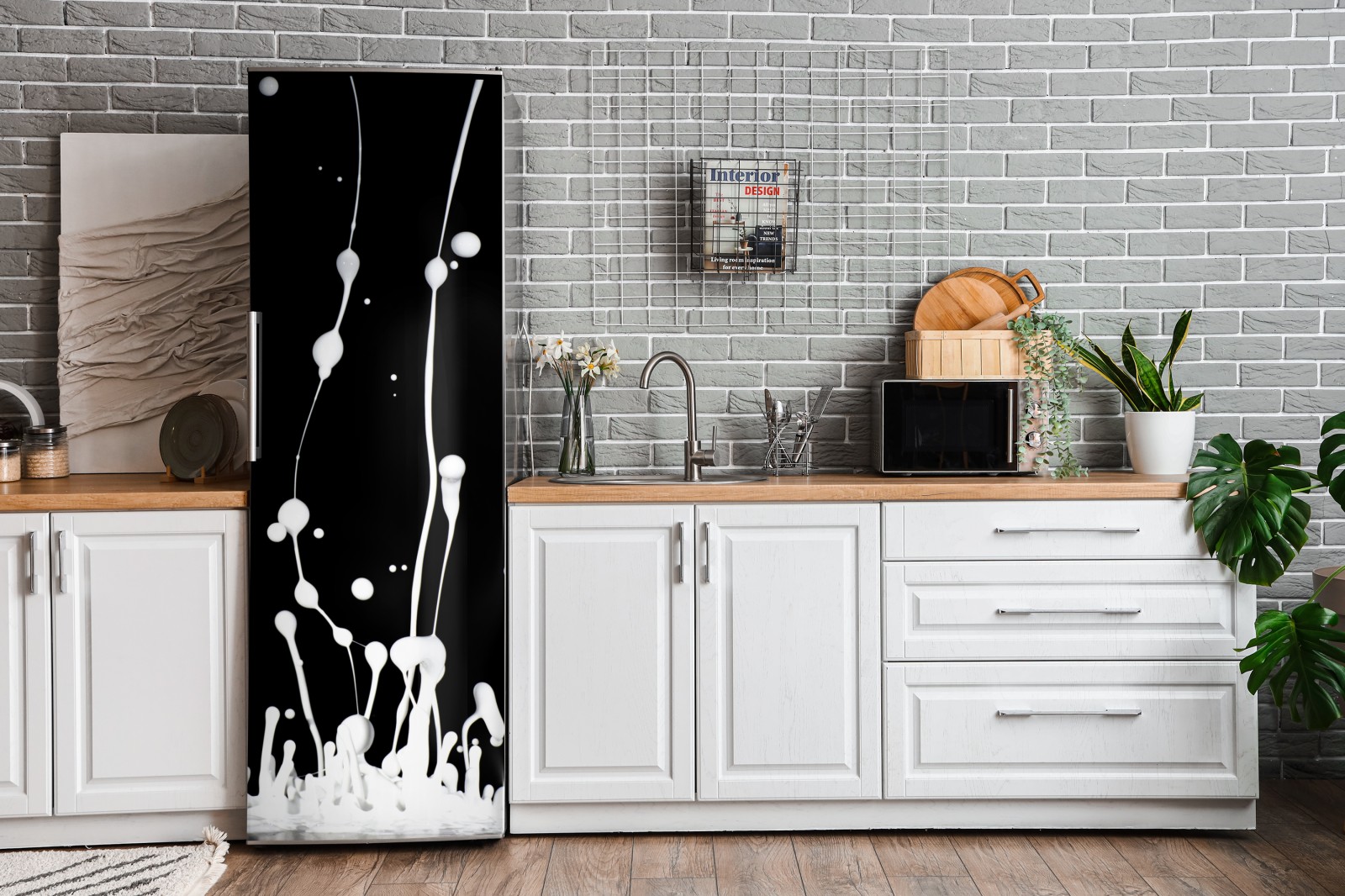 Naklejka na lodówkę Biały rozprysk na czarnym tle