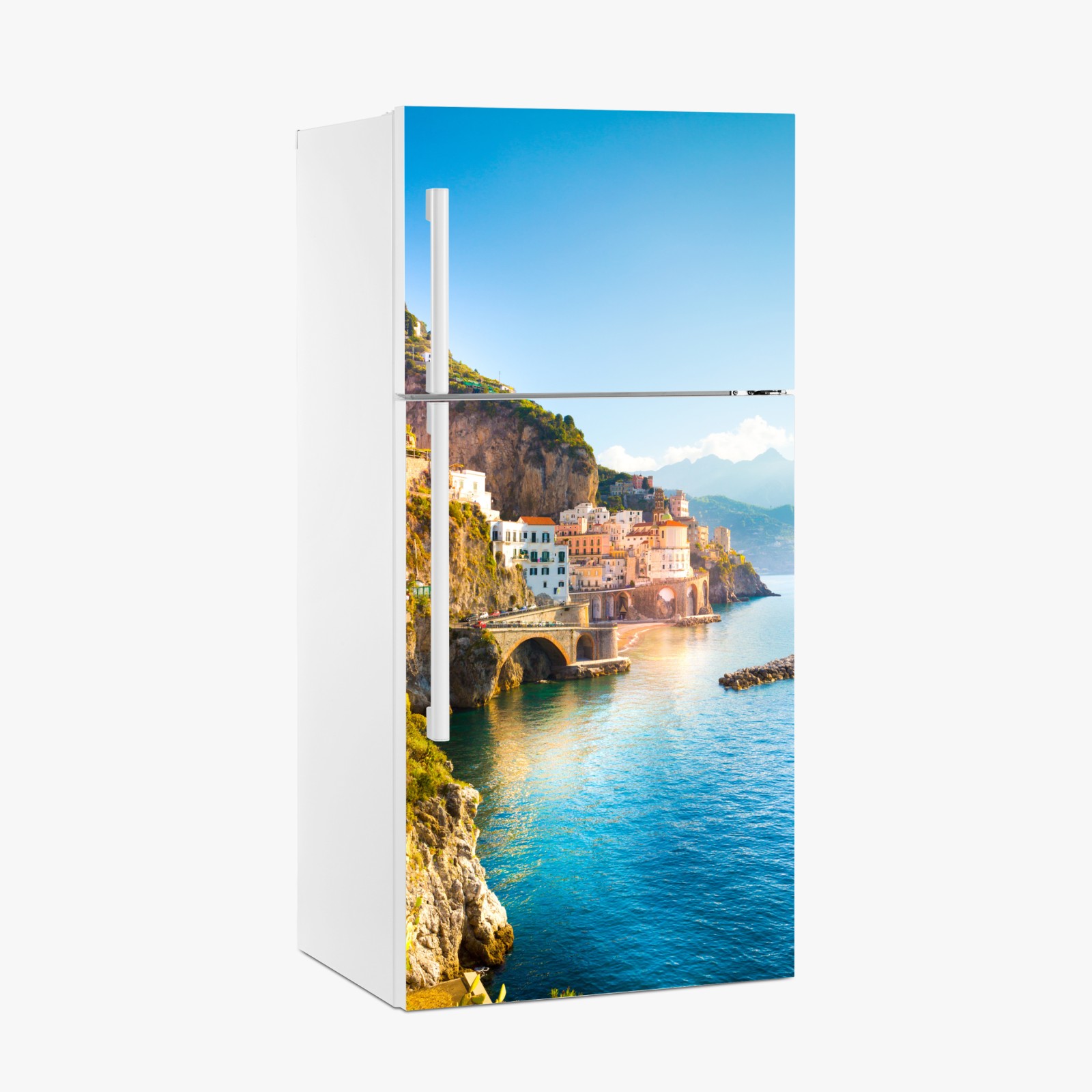 Naklejka na lodówkę Słoneczna wioska nadbrzeżna na klifie