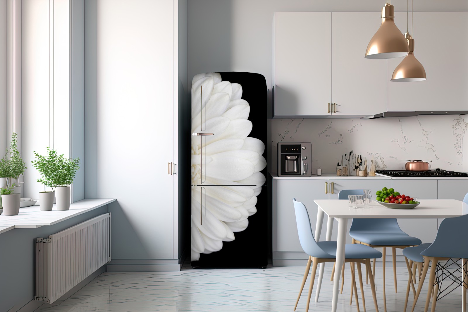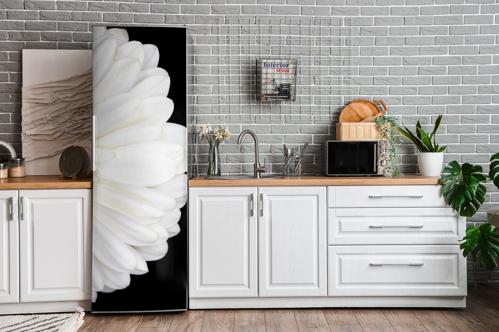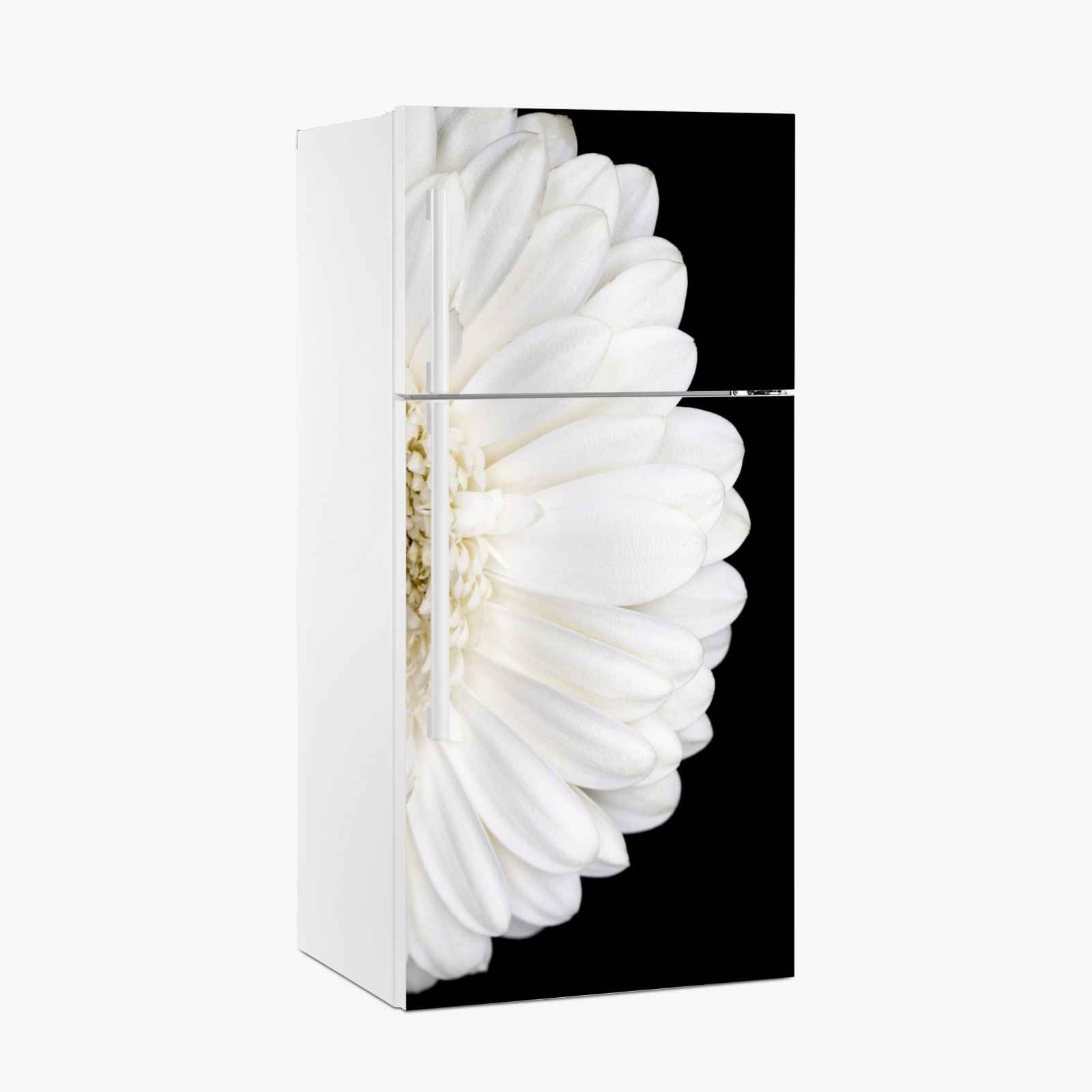 Naklejka na lodówkę Biała gerbera na czarnym tle minimalistyczne zbliżenie