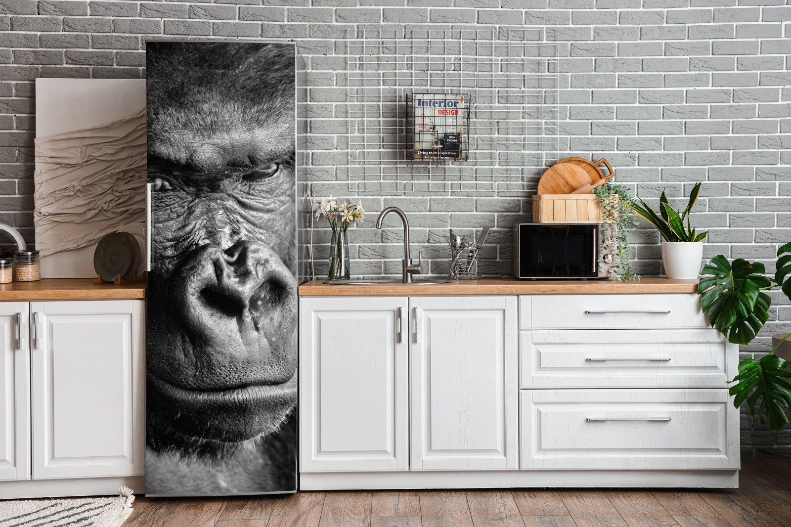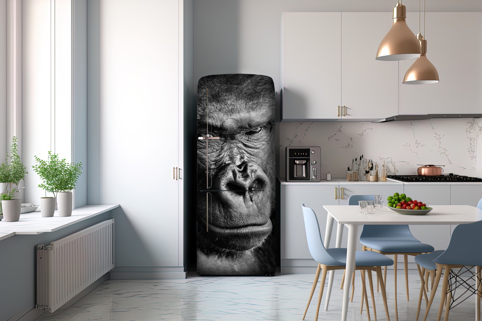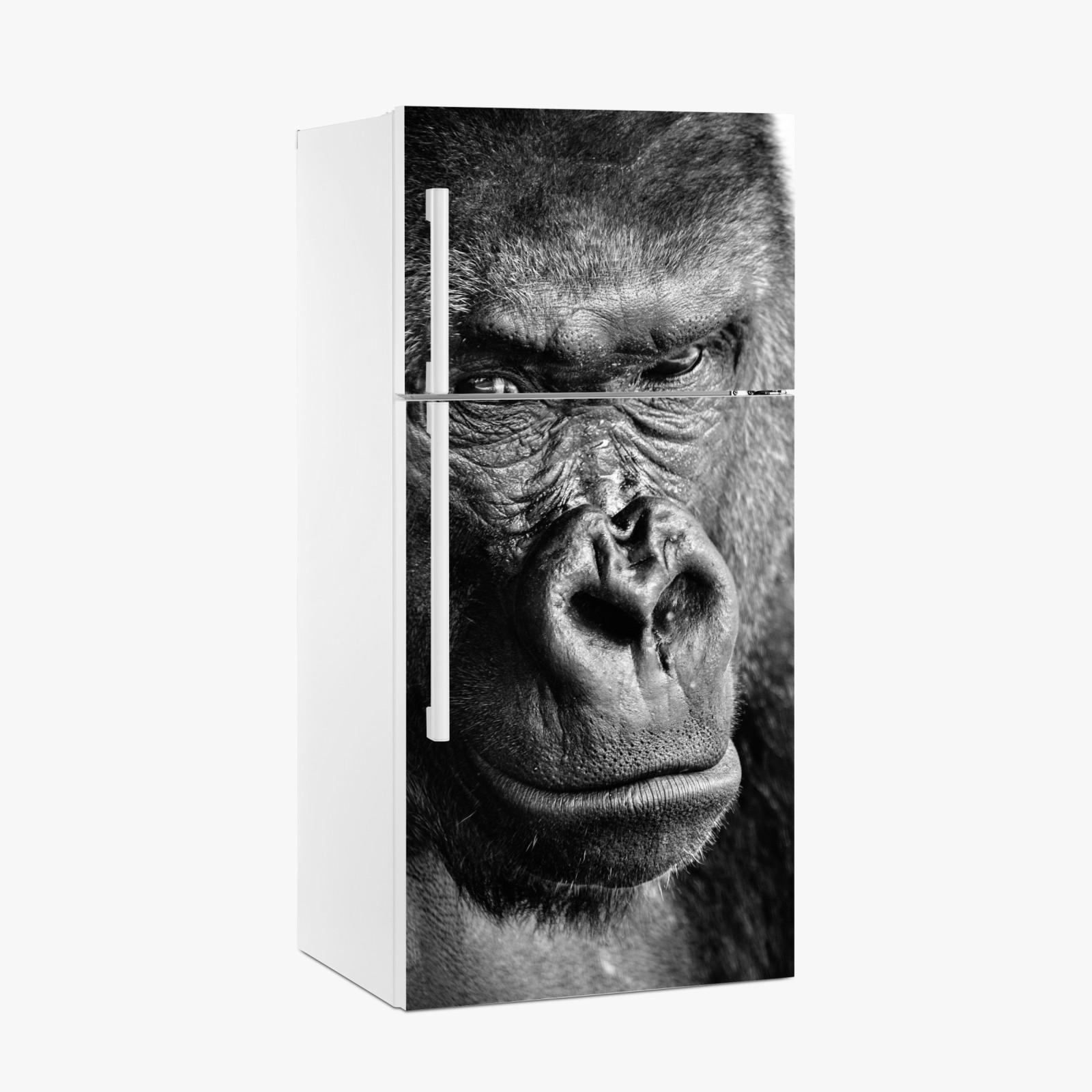 Naklejka na lodówkę Intensywny portret goryla w czerni i bieli