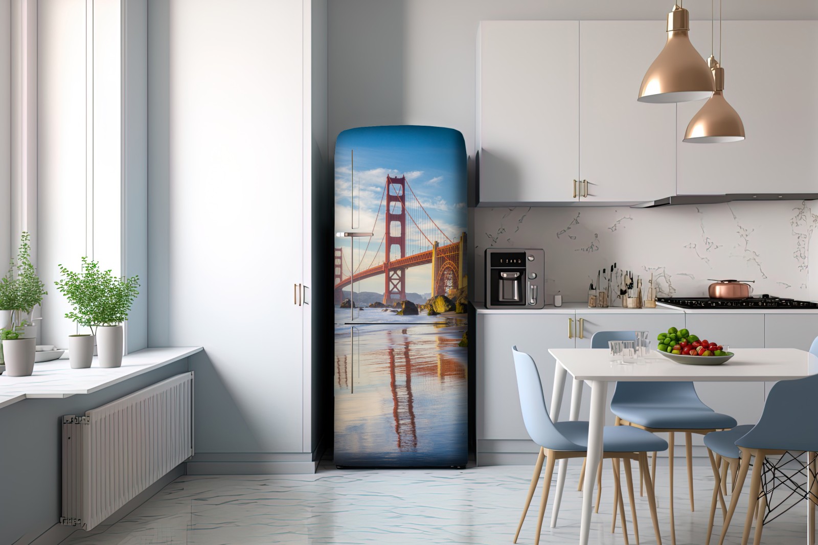 Naklejka na lodówkę Most Golden Gate odbicie na brzegu