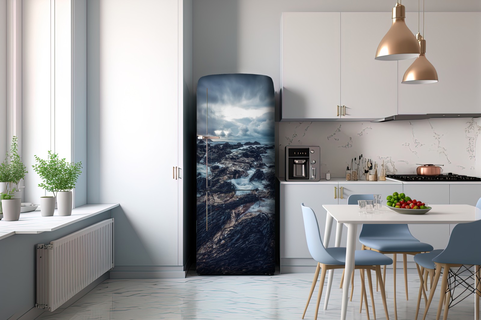 Naklejka na lodówkę Nastrojowe skaliste wybrzeże o zmierzchu