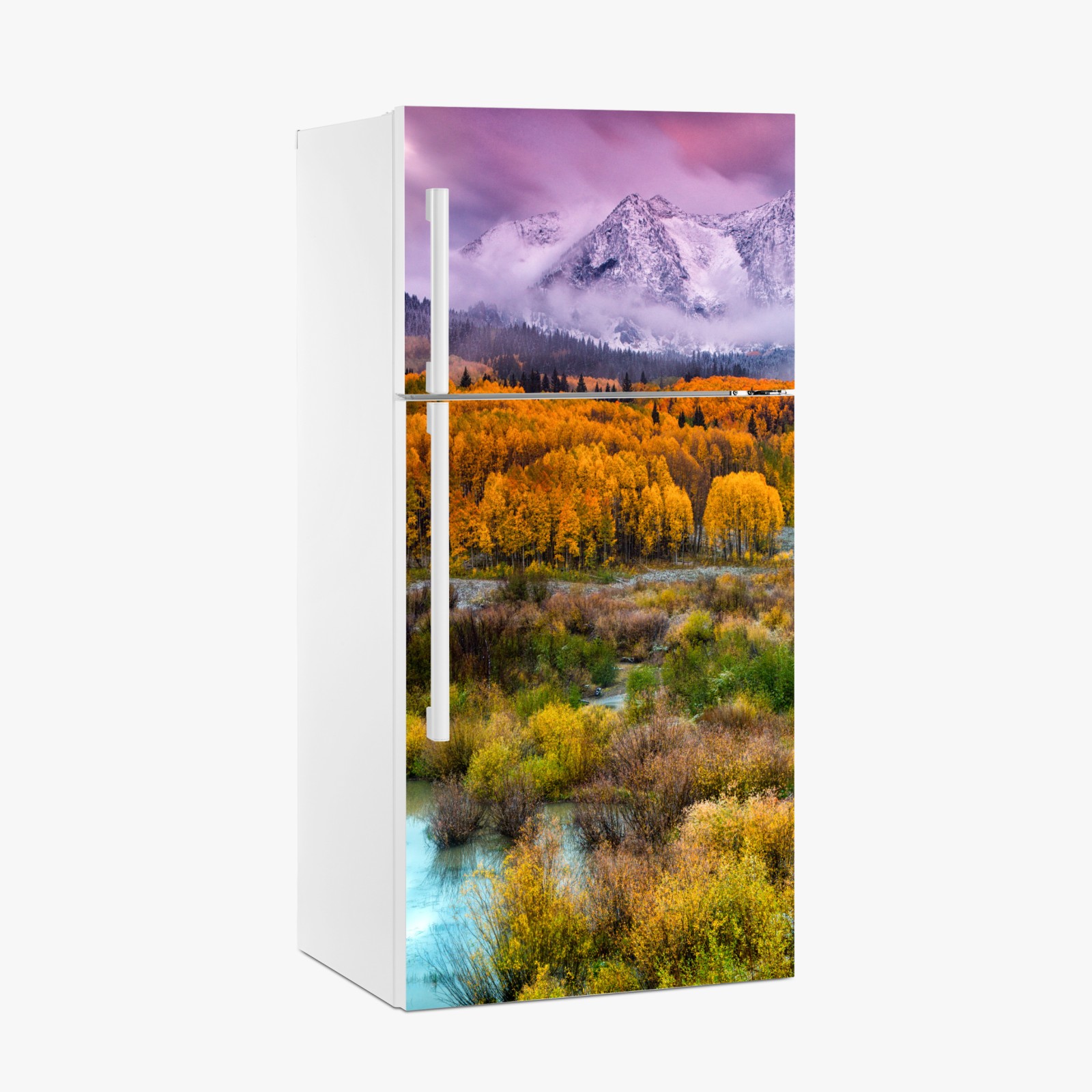 Wprowadź do wnętrza spokojne piękno Kolorado jesienią dzięki temu barwnemu krajobrazowi z złotymi osikami, ośnieżonymi szczytami i różowym wschodem słońca.