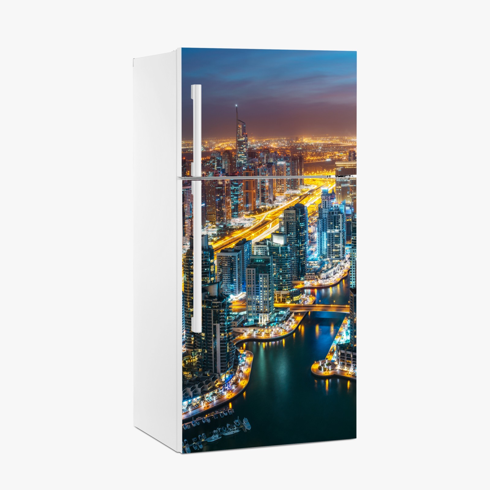 Naklejka na lodówkę Nocna panorama Dubai Marina