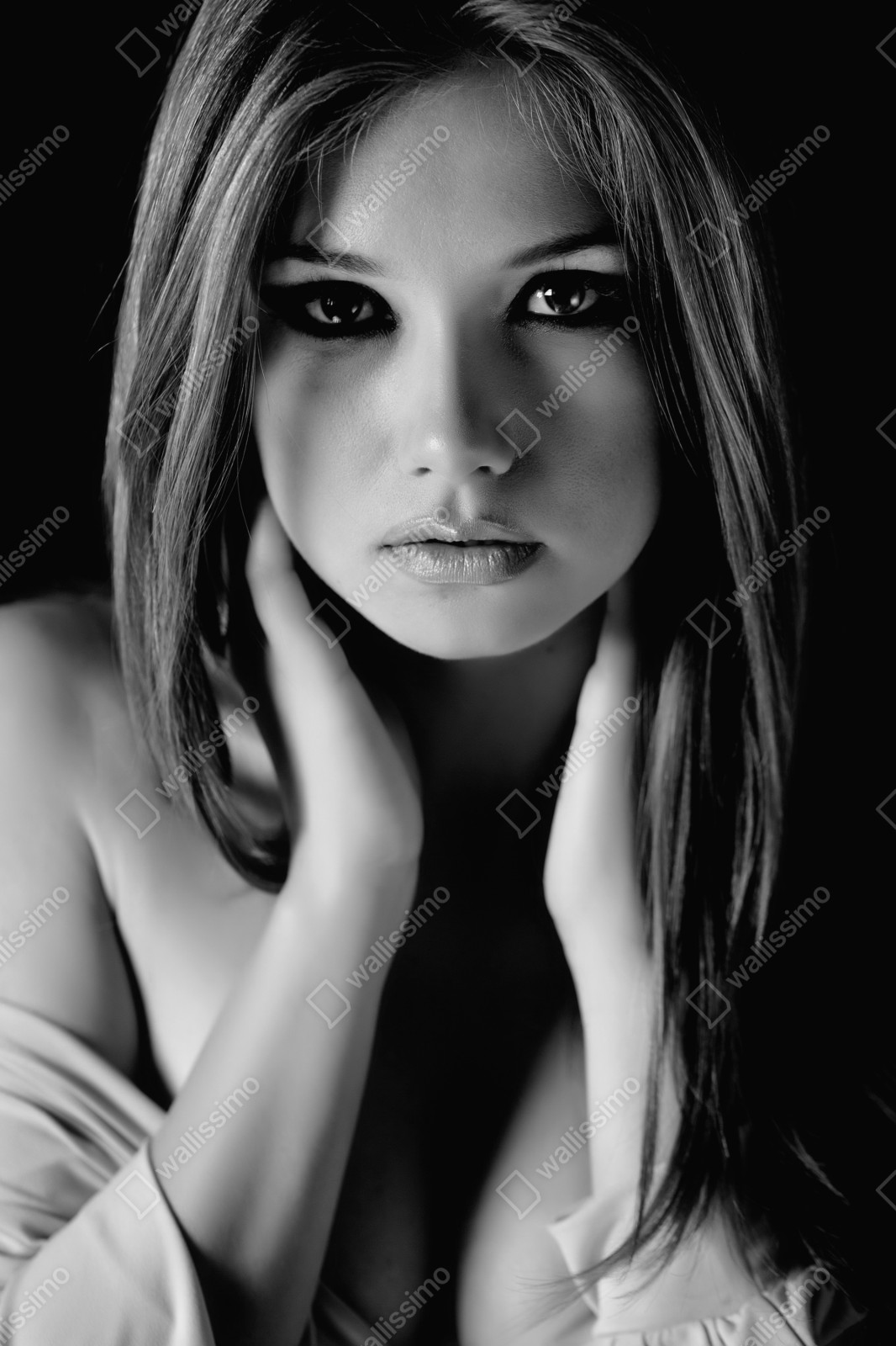 Elegancki monochromatyczny portret dodaje wnętrzu dramatyzmu i ponadczasowego uroku, idealny jako wyrazisty akcent dekoracyjny.