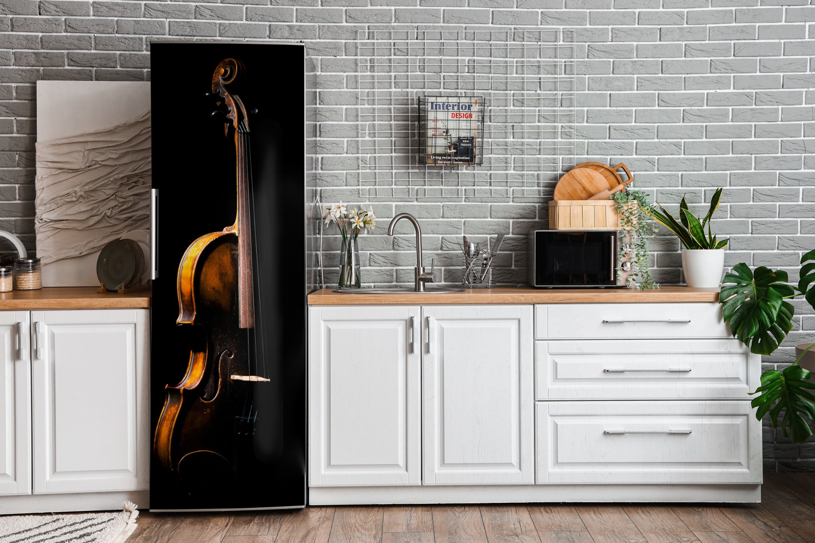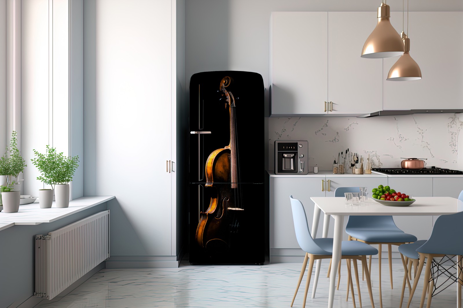Naklejka na lodówkę Eleganckie retro skrzypce na czarnym tle