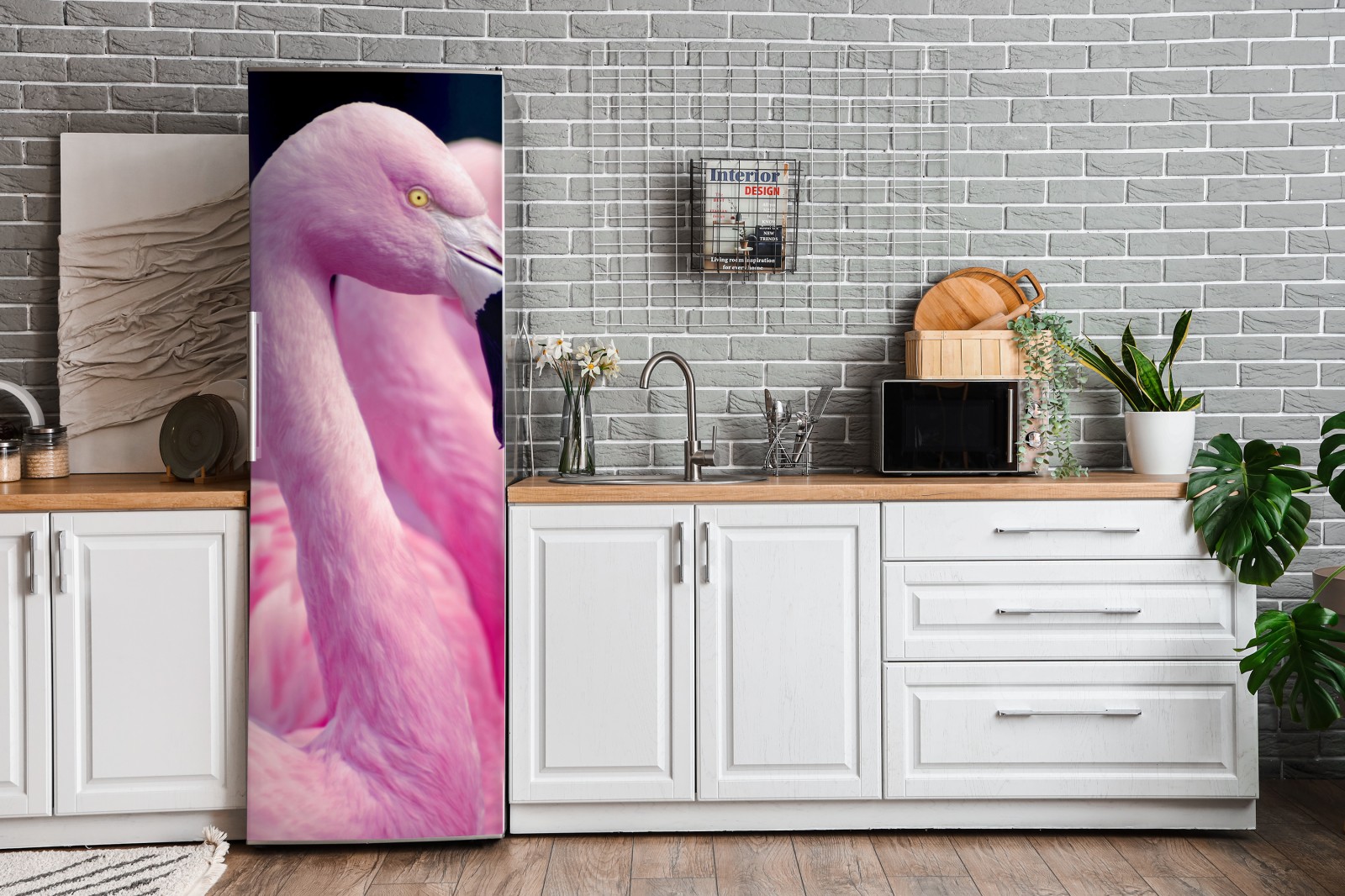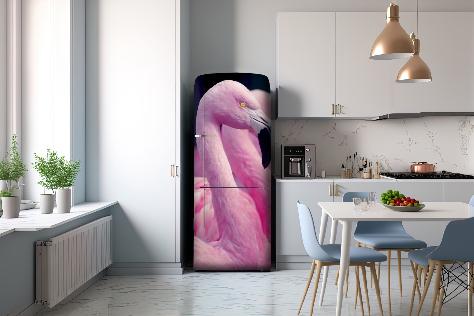 Naklejka na lodówkę Delikatny portret różowego flaminga