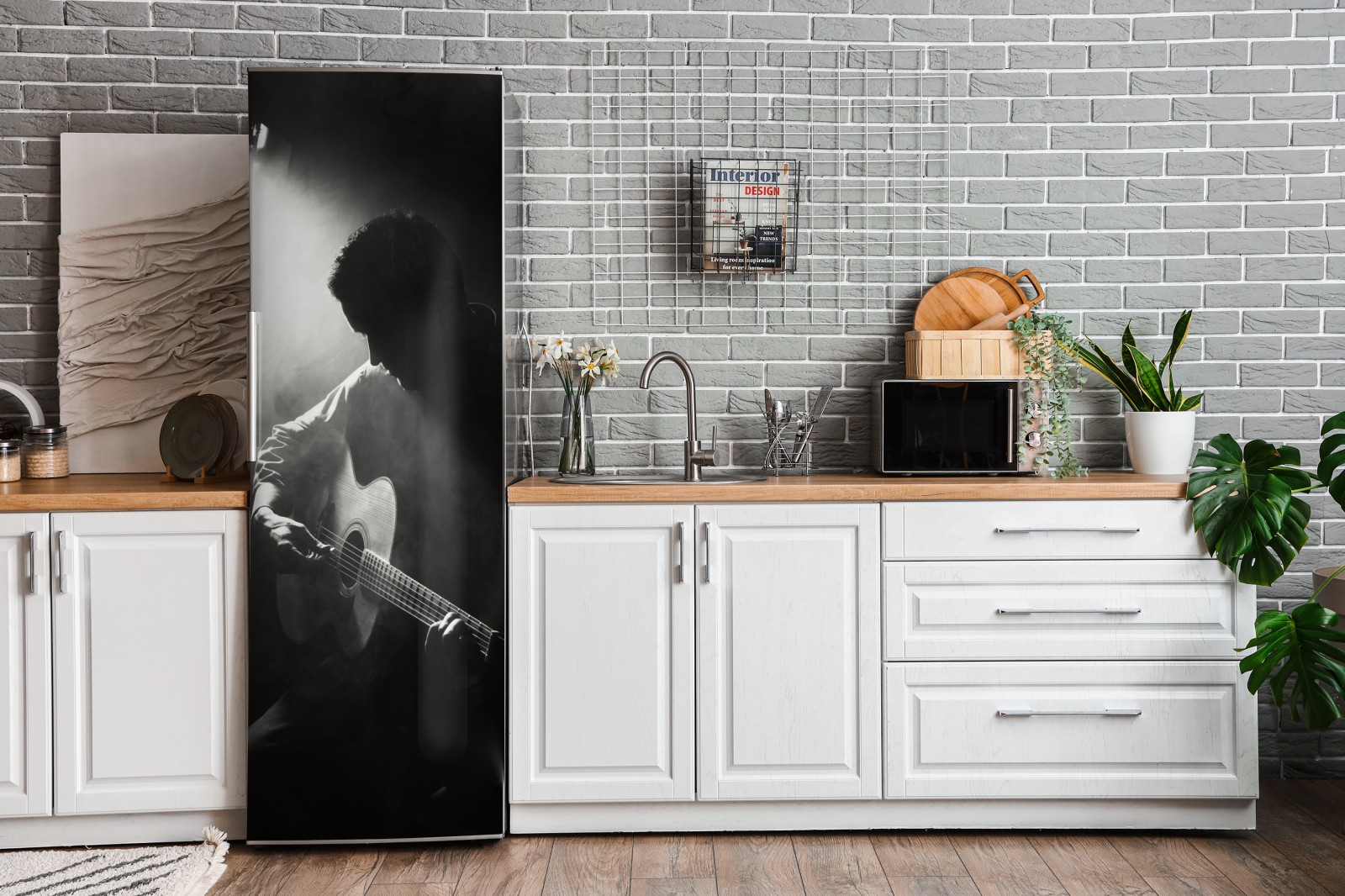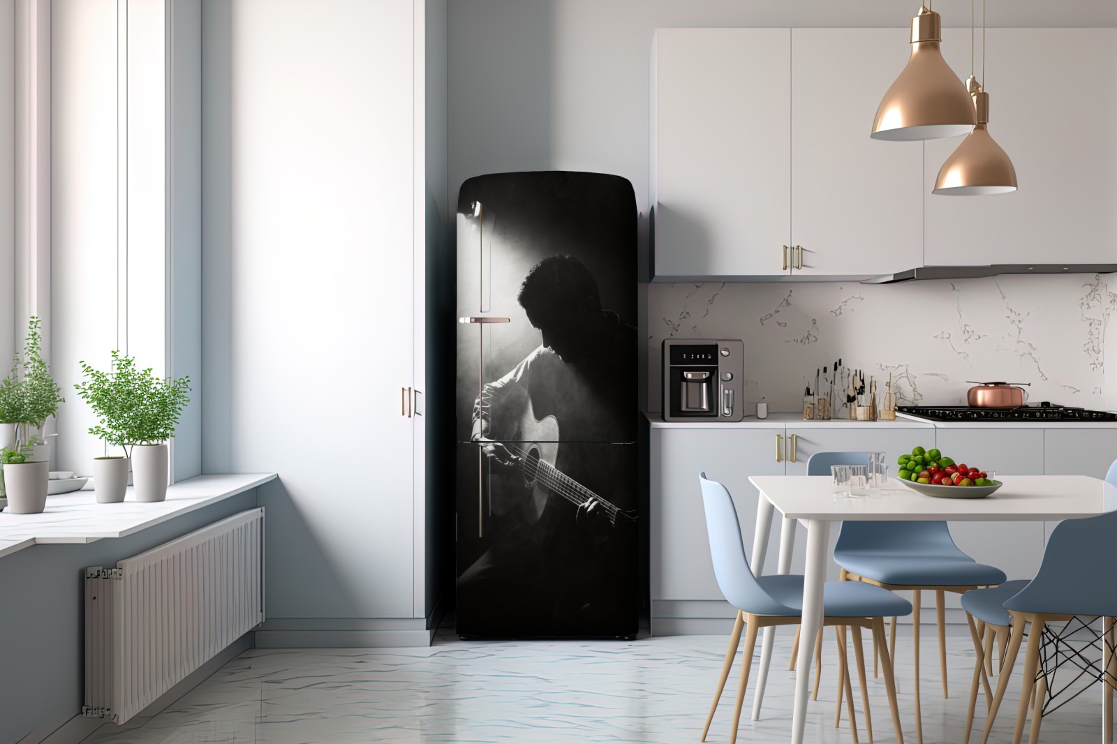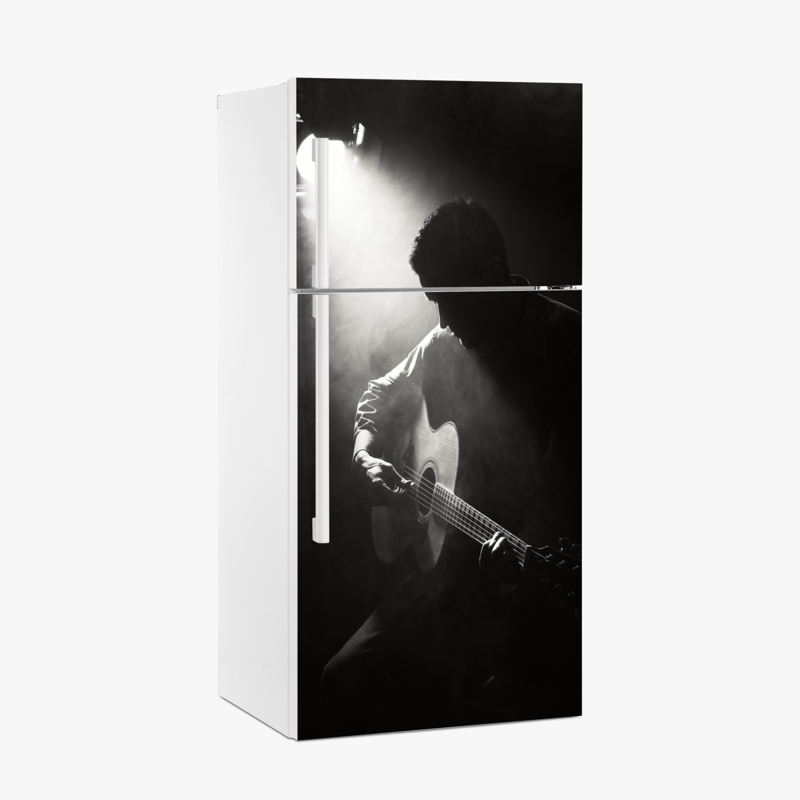 Naklejka na lodówkę Sylwetka gitarzysty w świetle reflektora