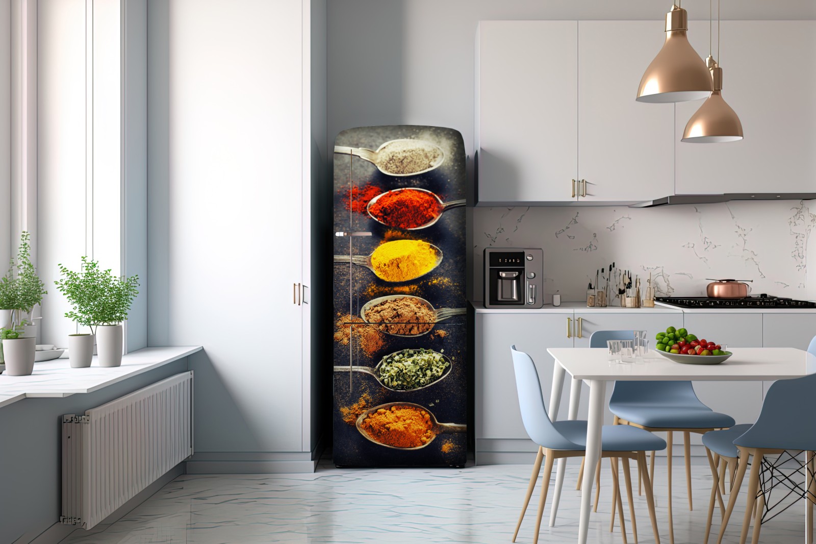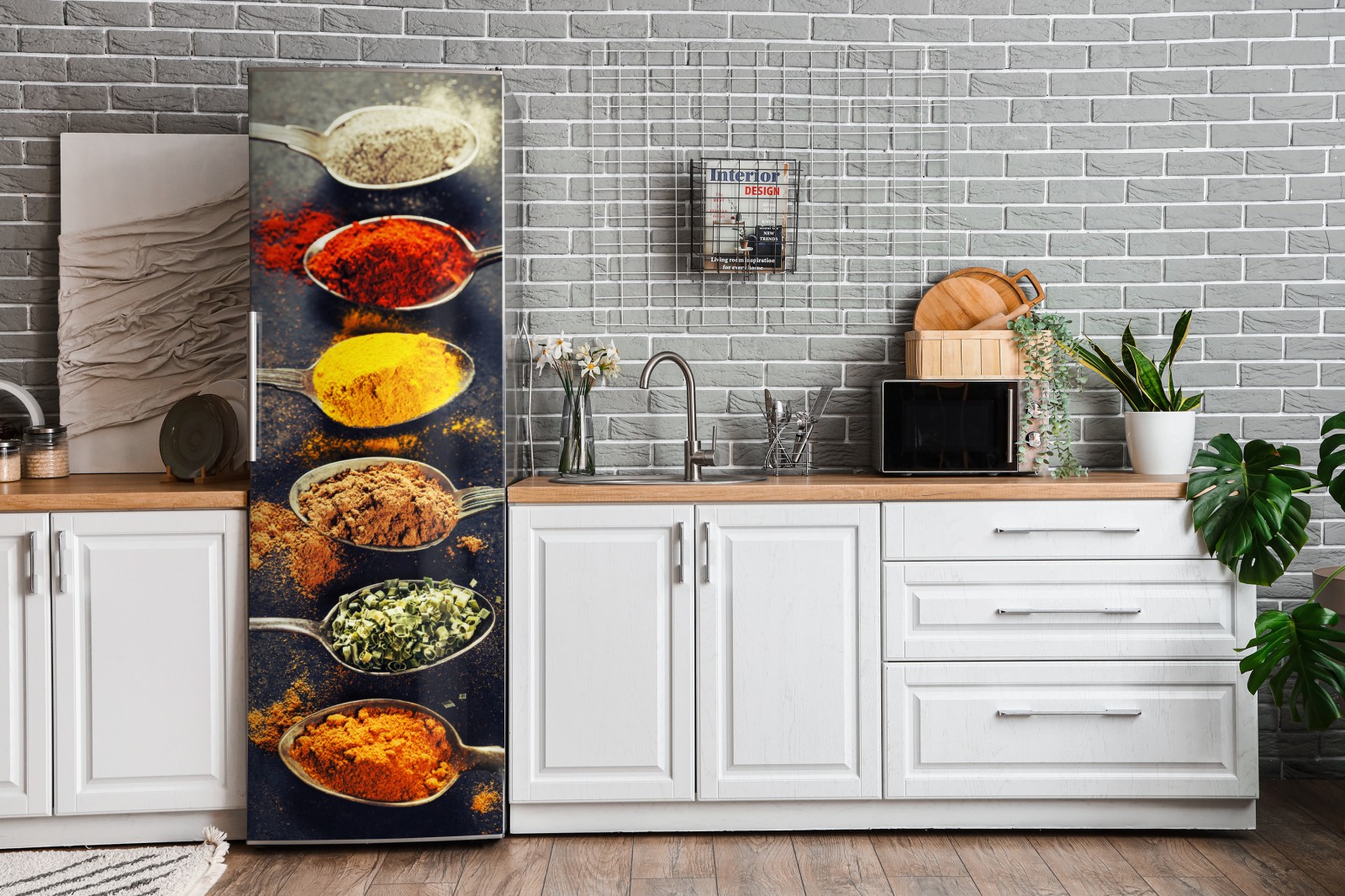 Naklejka na lodówkę Kolorowe łyżki z przyprawami